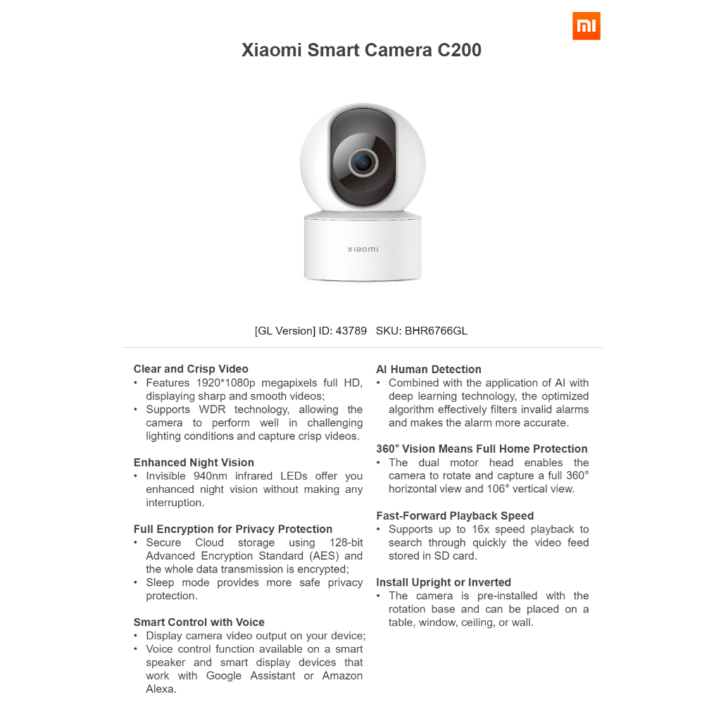 XIAOMI Smart Camera C300 2K 3M กล้องวงจรปิด wifi AI สั่งด้วยเสียง กล้องวงจรปิดไร้สาย BY HVISION