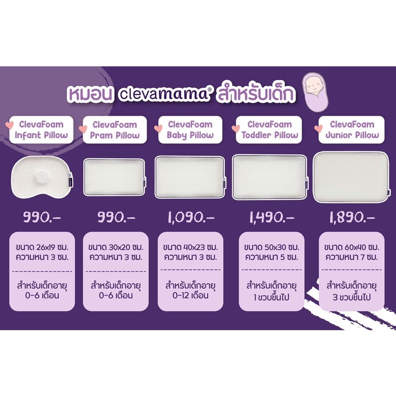 🛵ส่งด่วนทันทีตัดรอบ5โมงเย็น🛵มีสติ้กเกอร์ของเเท้จากศูนย์ไทย Clevamama หมอนกันหัวแบน หมอนหัวทุย