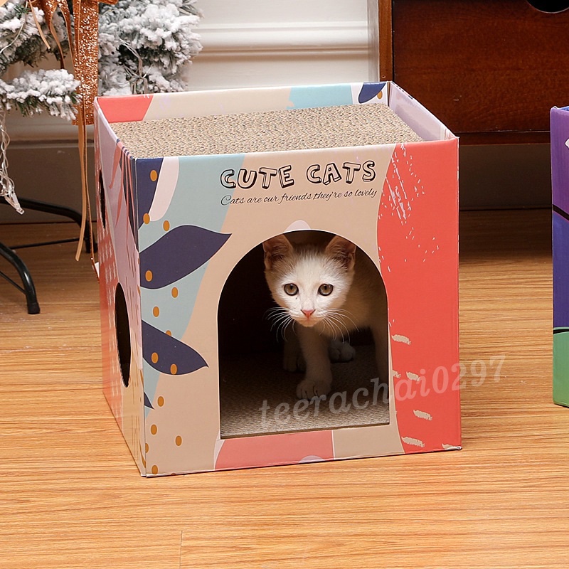 ที่ลับเล็บแมว กล่องลับเล็บแมว ที่นอนแมว บ้านแมว ลับเล็บได้ 2 ชั้น