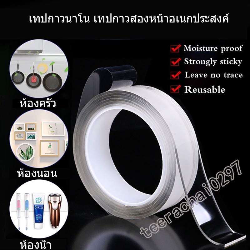 นาโนเทปกาวใส เทปกาวสองหน้า เทปกาวสองหน้าอเนกประสงค์ ใช้ซ้ำได้เรื่อยๆ(หนาทนทาน)