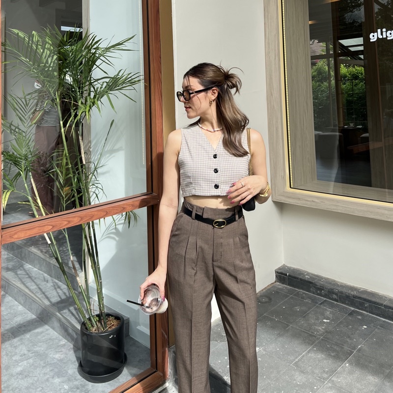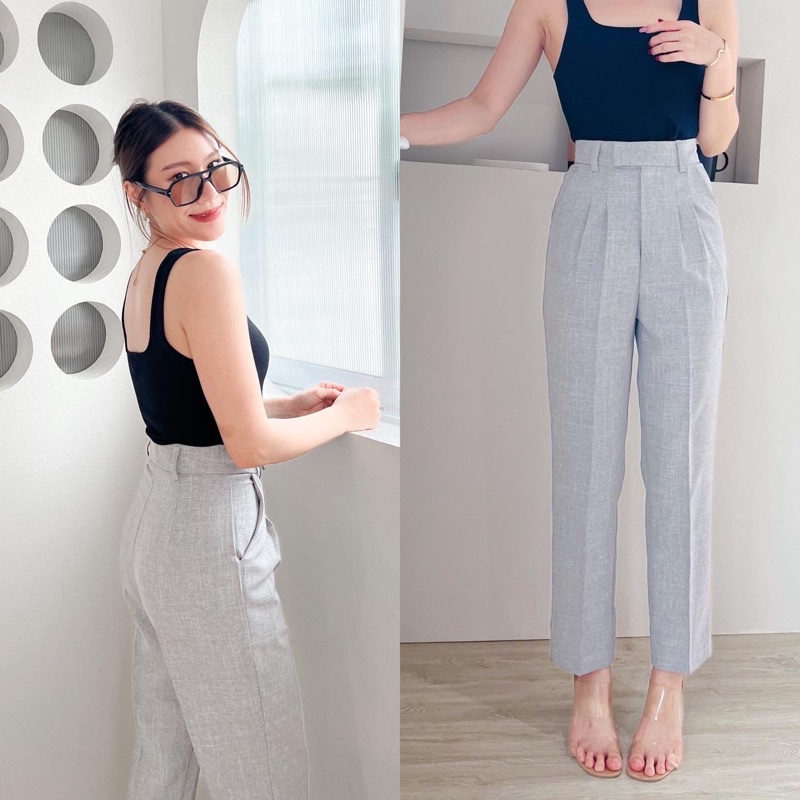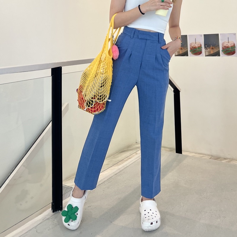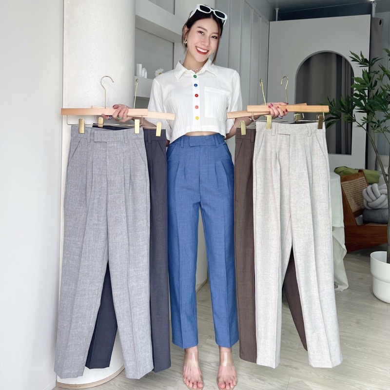 THESUNCO - Kovy Trousers กางเกงขากระบอกเล็ก เก็บหุ่น เอวเล็ก มีสะโพกเอาอยู่