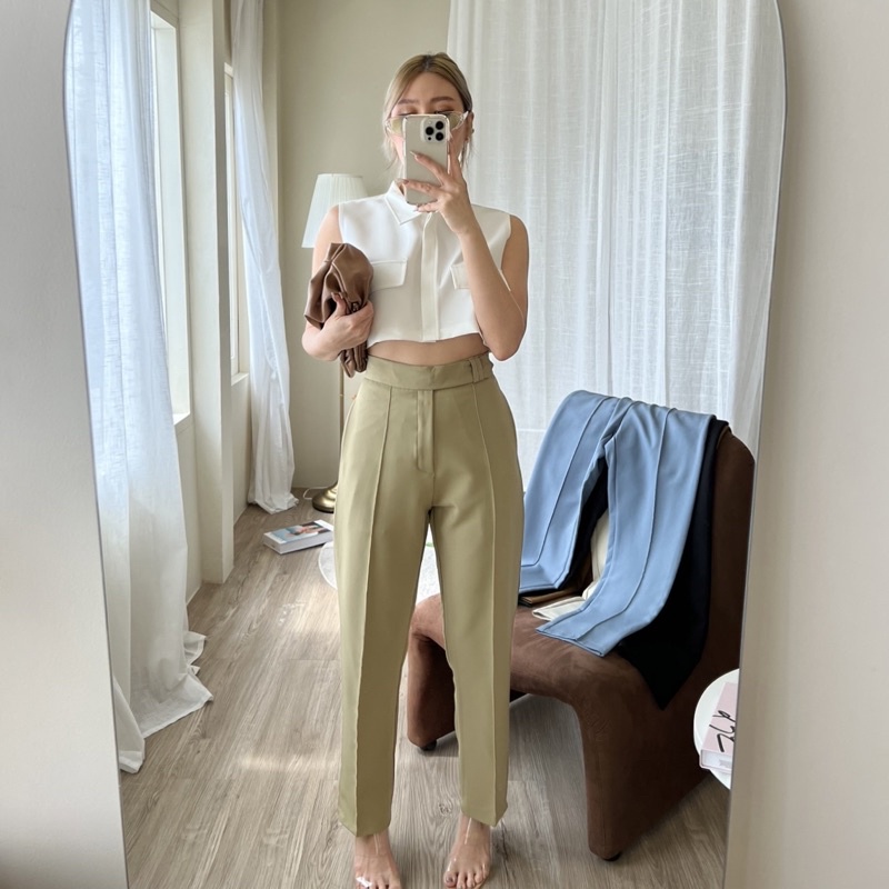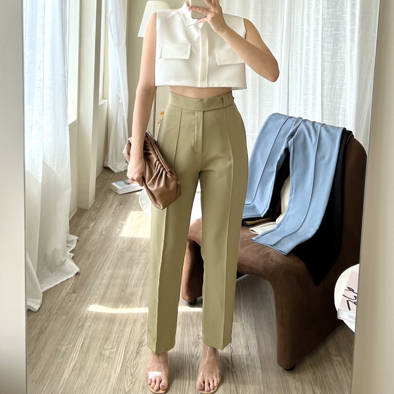 Luca Trousers(ลด30%เก็บคูปองหน้าแอป)กางเกงขากระบอกเล็ก เก็บหุ่นตั้งแต่ XS-3XL งานตัด THESUNCO