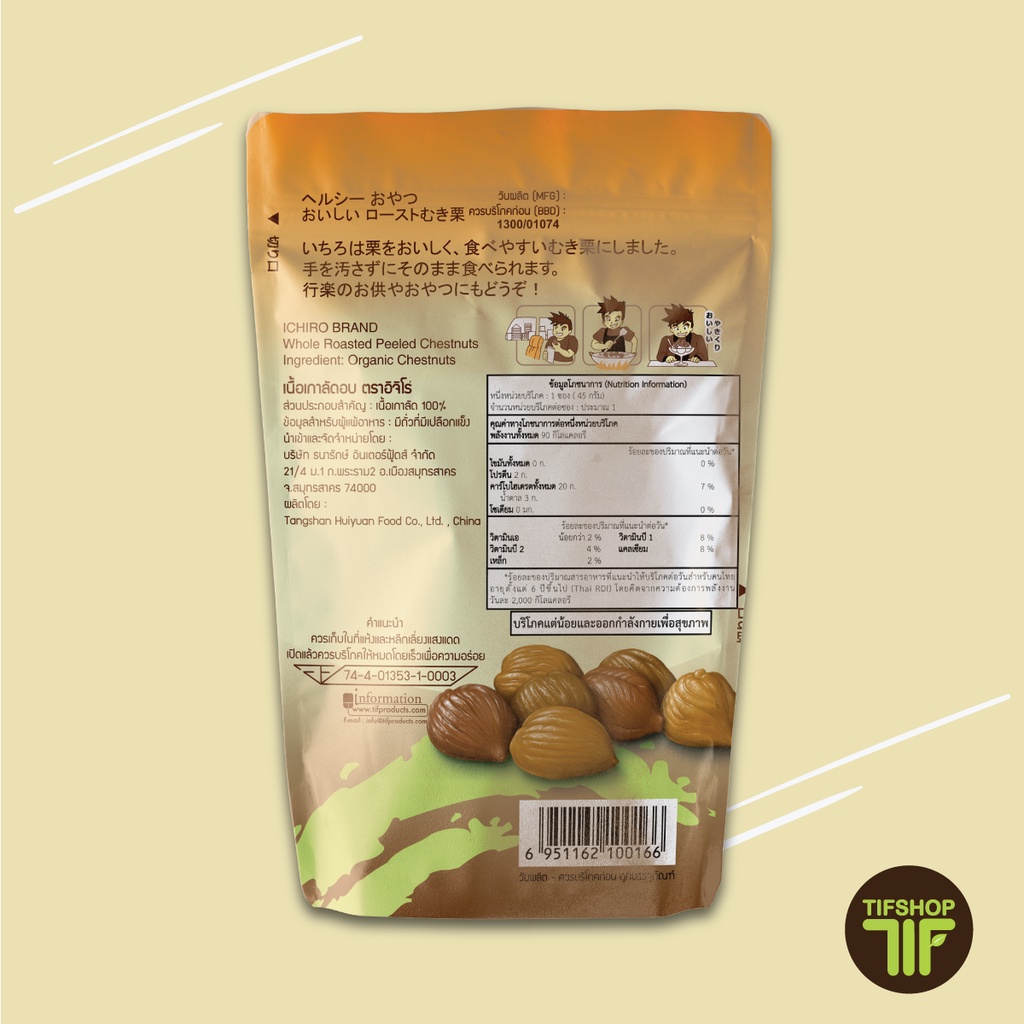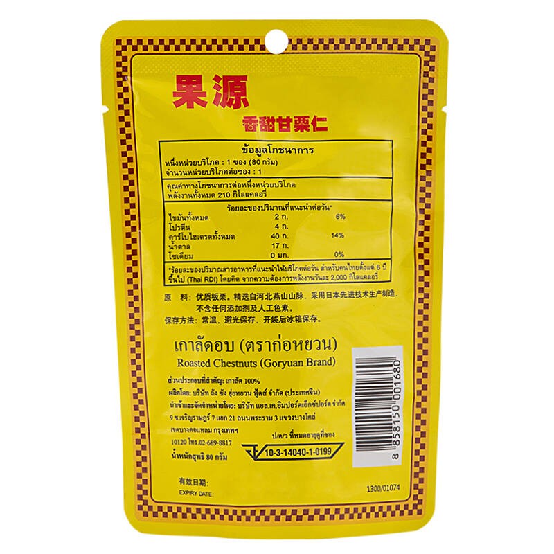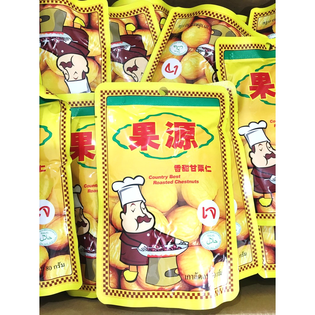 ขนม เกาลัด เกาลัดอบก่อหยวน เกาลัดอบ ตรา ก่อหยวน Roasted Chestnuts ( Goryuan Brand ) ขนาด 80 กรัม และ 100 กรัม