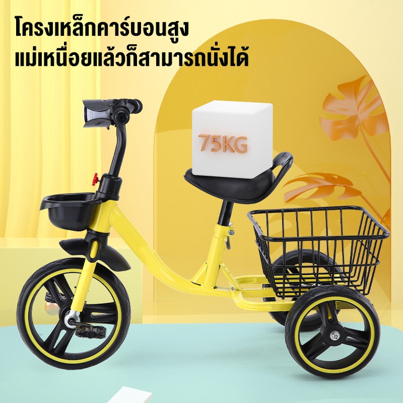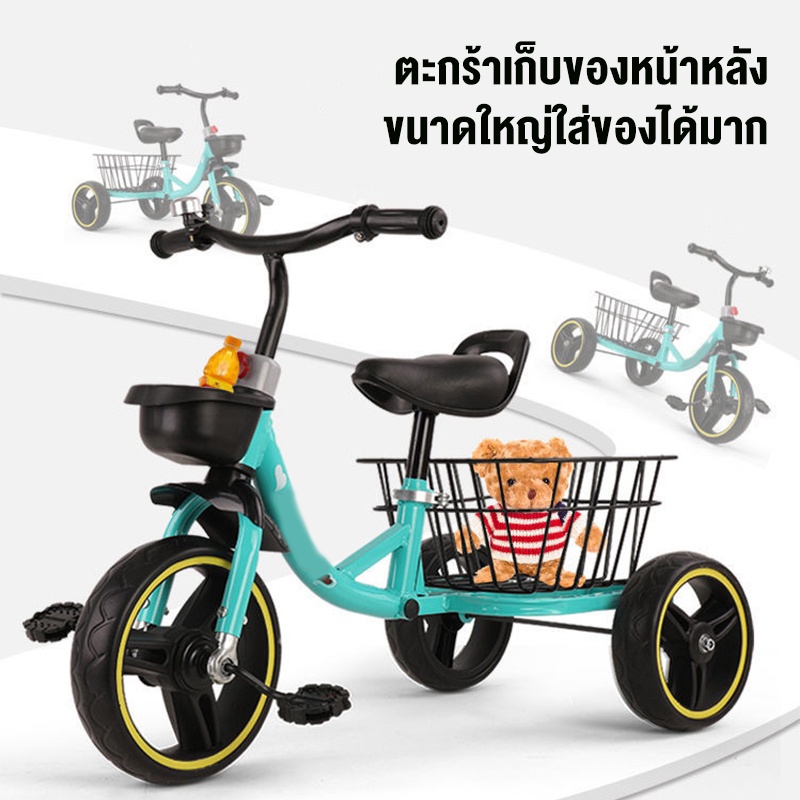 Beige จักรยานเด็ก ตะกร้าเก็บข องหน้าหลัง โครงเหล็กคาร์บอนสูง คันเหยียบกันลื่น เหมาะกับอายุ1-6 ขวบ