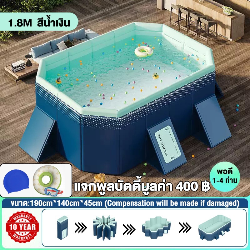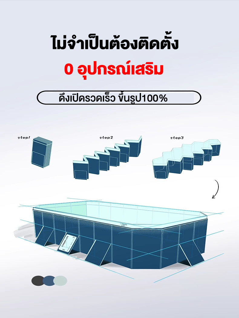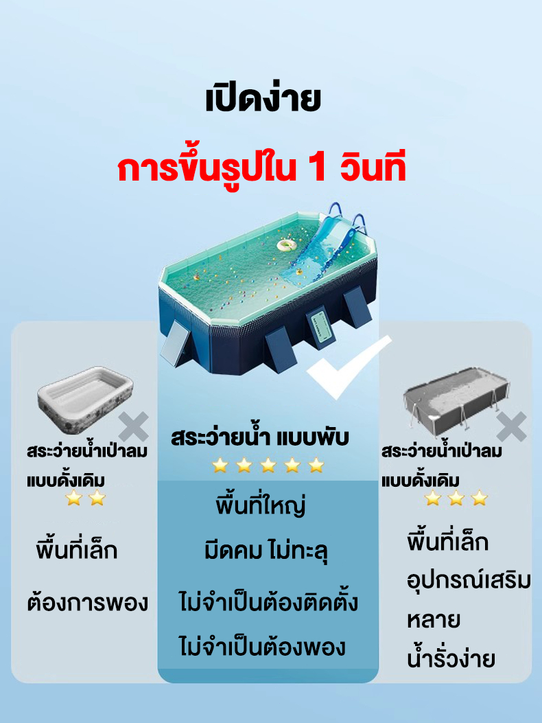 Beige สระว่ายน้ำ สระน้ําเด็ก สระน้ํา สระใหญ่ ไม่เป่าลม สระว่ายน้ำพับได้ 3/2.6/1.8M ขนาดใหญ่
