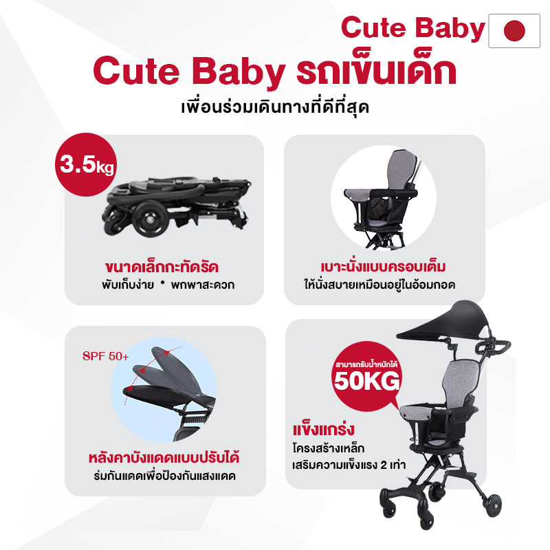 Beige รถเข็ นเด็ก รถเข็นเด็กพับได้ พกพาสะดวก เข็นหน้า-หลังได้ นำขึ้นเครื่องบินได้ รถเข็นเด็กแรกเกิด