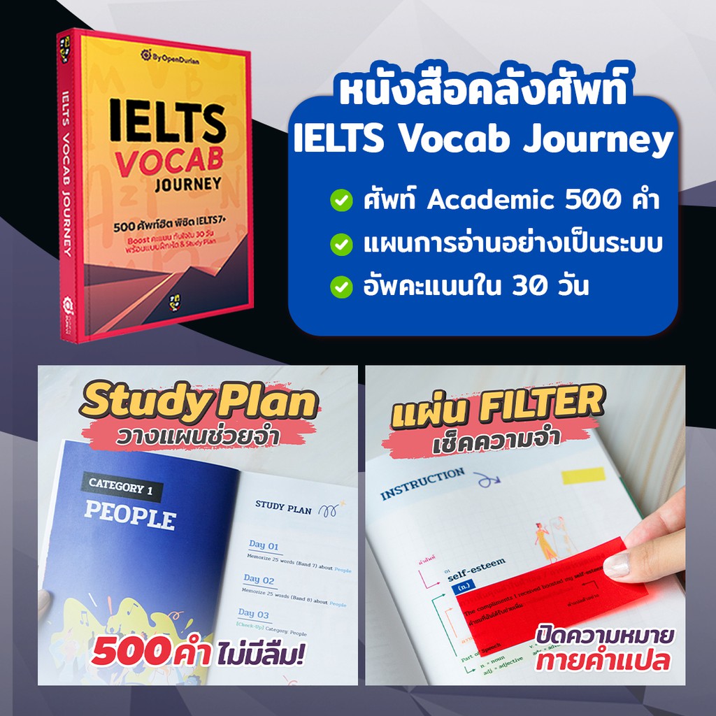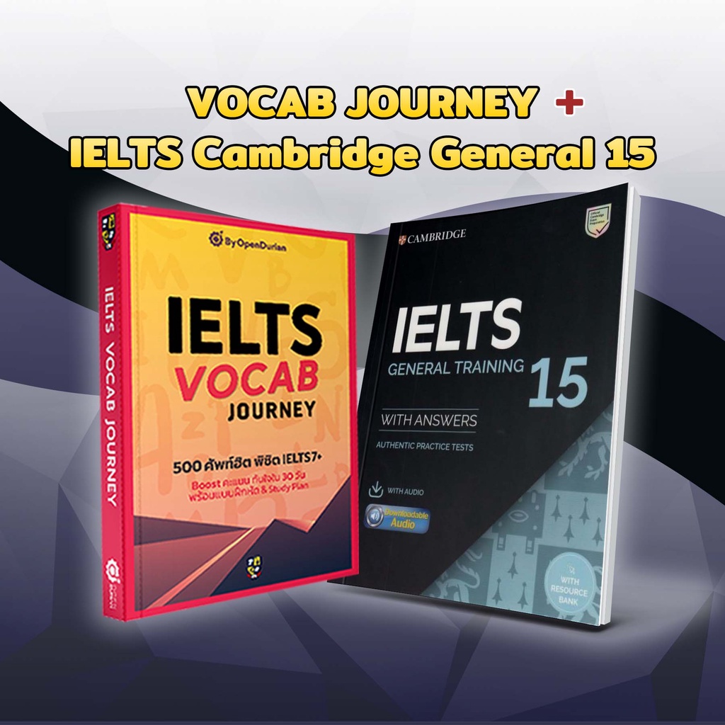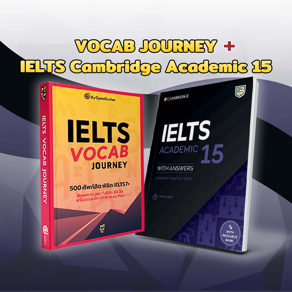 แพ็กคู่พร้อมสอบ IELTS : หนังสือฝึกโจทย์ IELTS Cambridge & หนังสือศัพท์ IELTS by KruJeab OpenDurian INTR