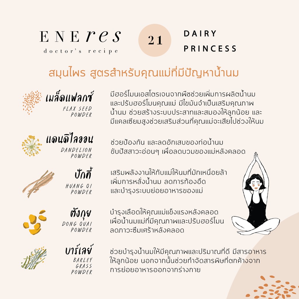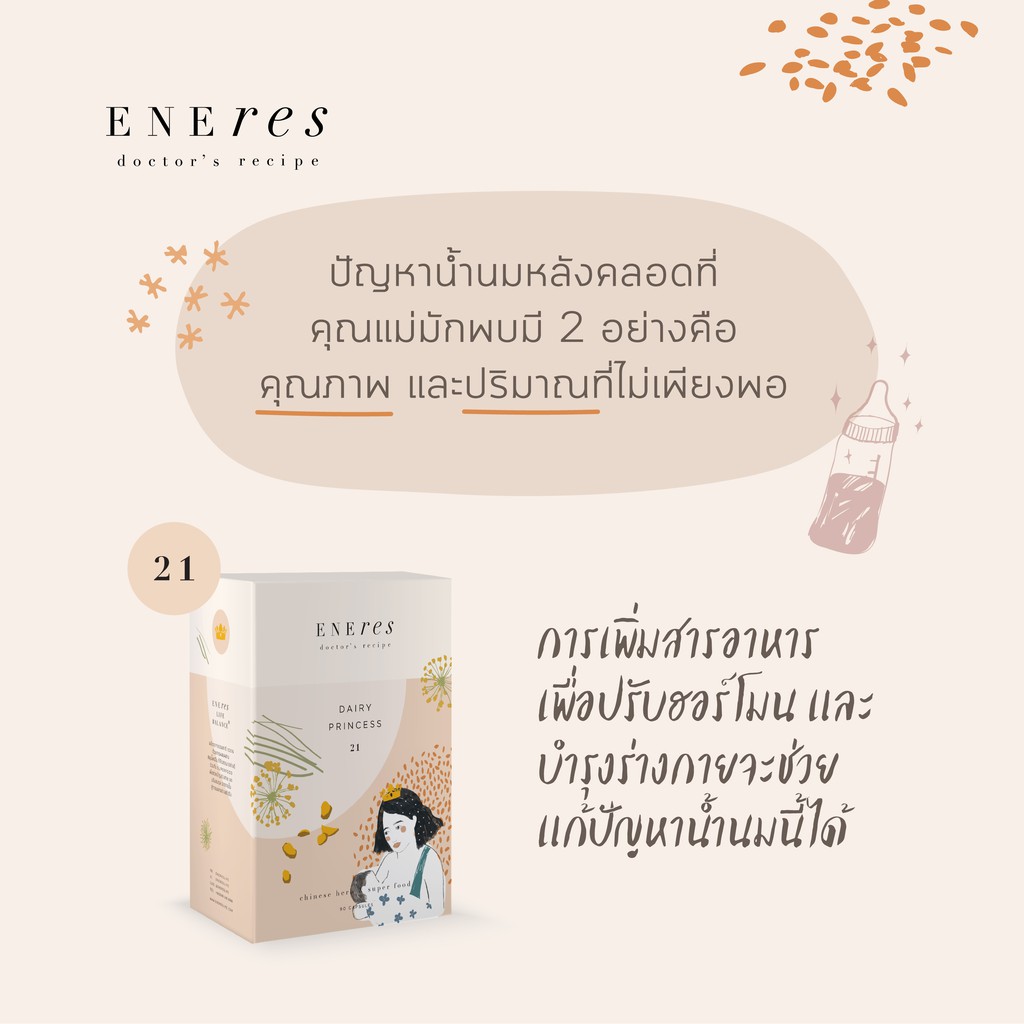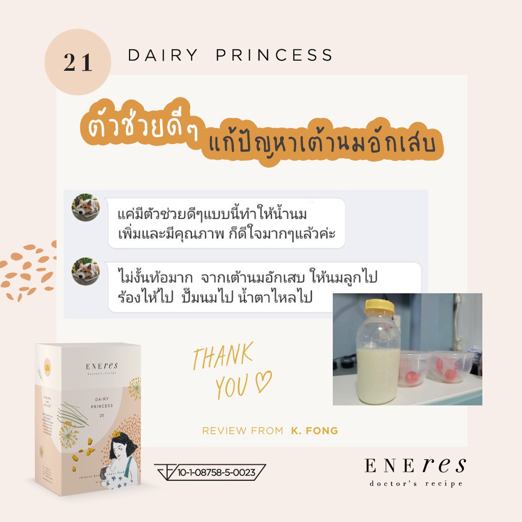 ENEres21(Dairy Princess)บำรุงน้ำนม เพิ่มปริมาณ+คุณภาพ ลูกอิ่มท้อง นอนได้นาน พัฒนาการดี แม่มีเวลาพักผ่อน แผลหลังคลอดหายไว