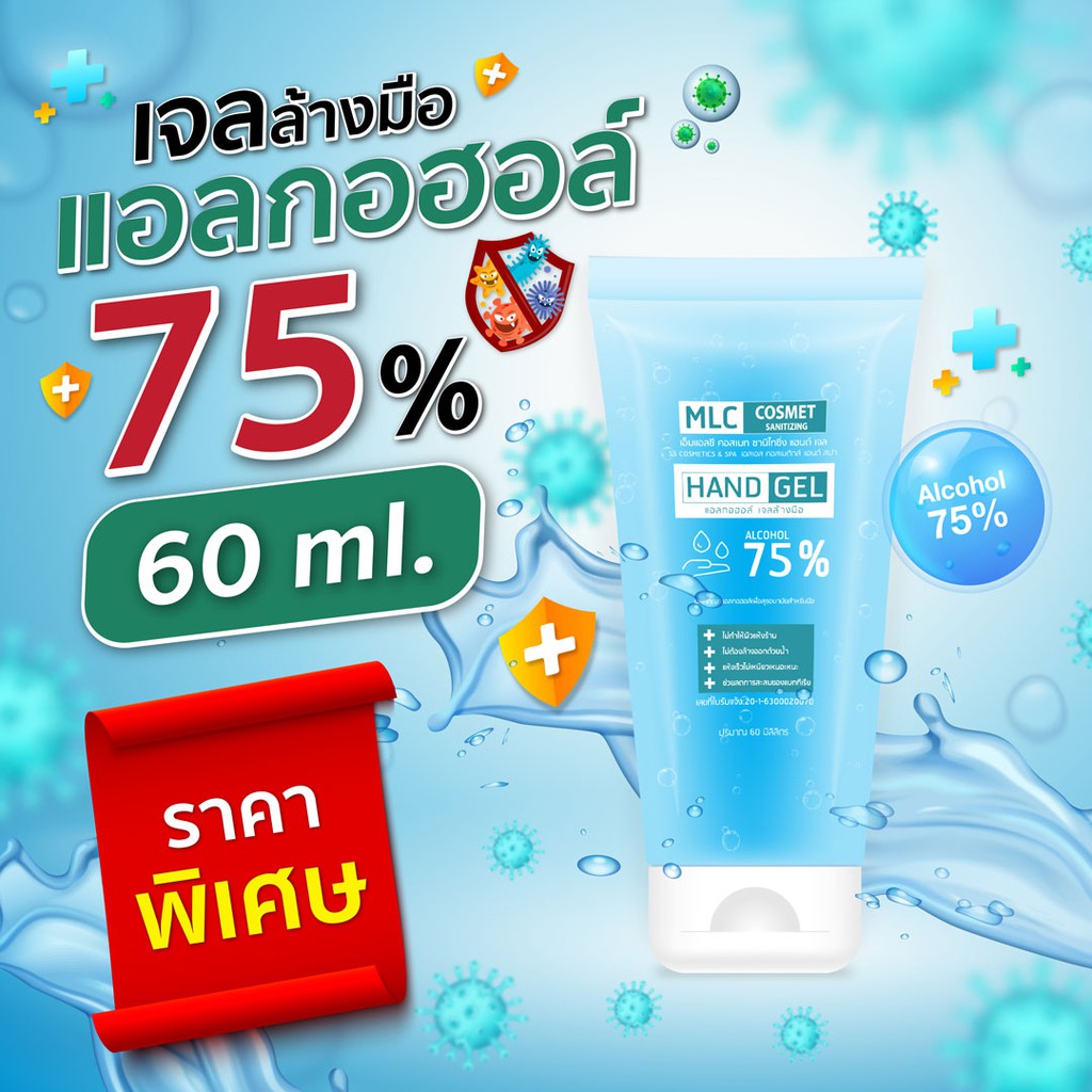 ลด10% กรอกโค๊ด RNMMPBT⭕️ MLC เจลแอลกอฮอล์60ml HAND GEL ถูกที่สุด แอลกอฮอล์ แฮนด์เจล
