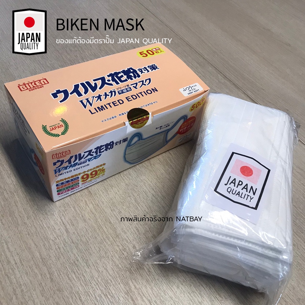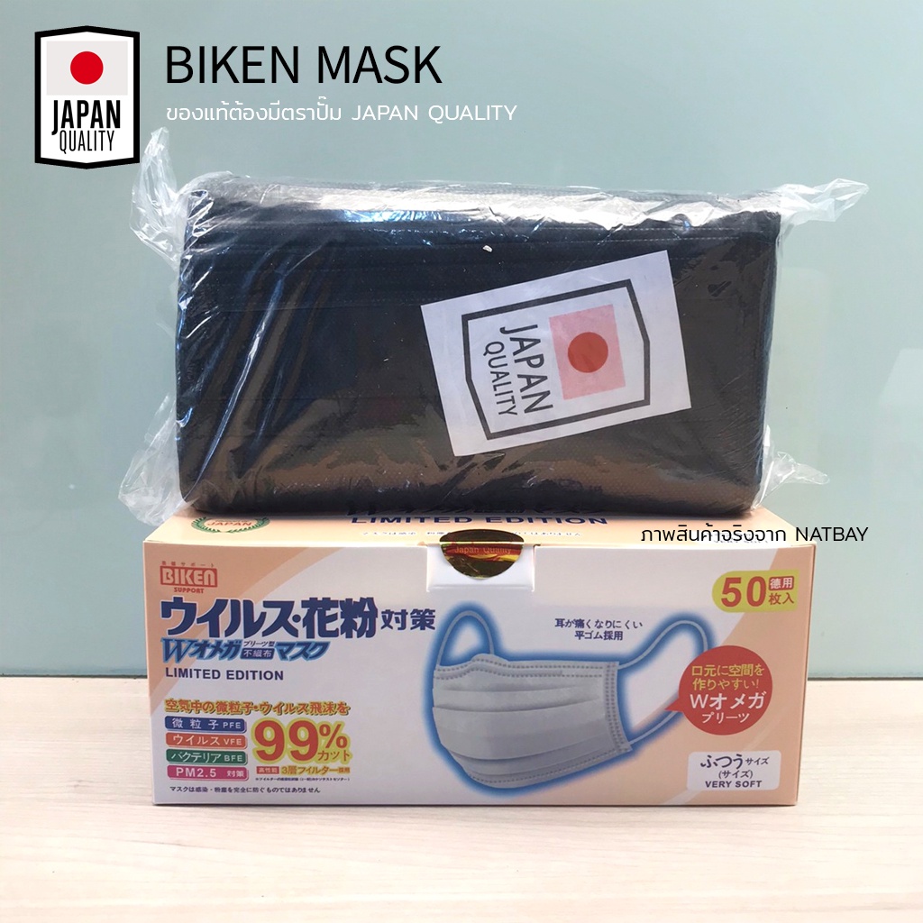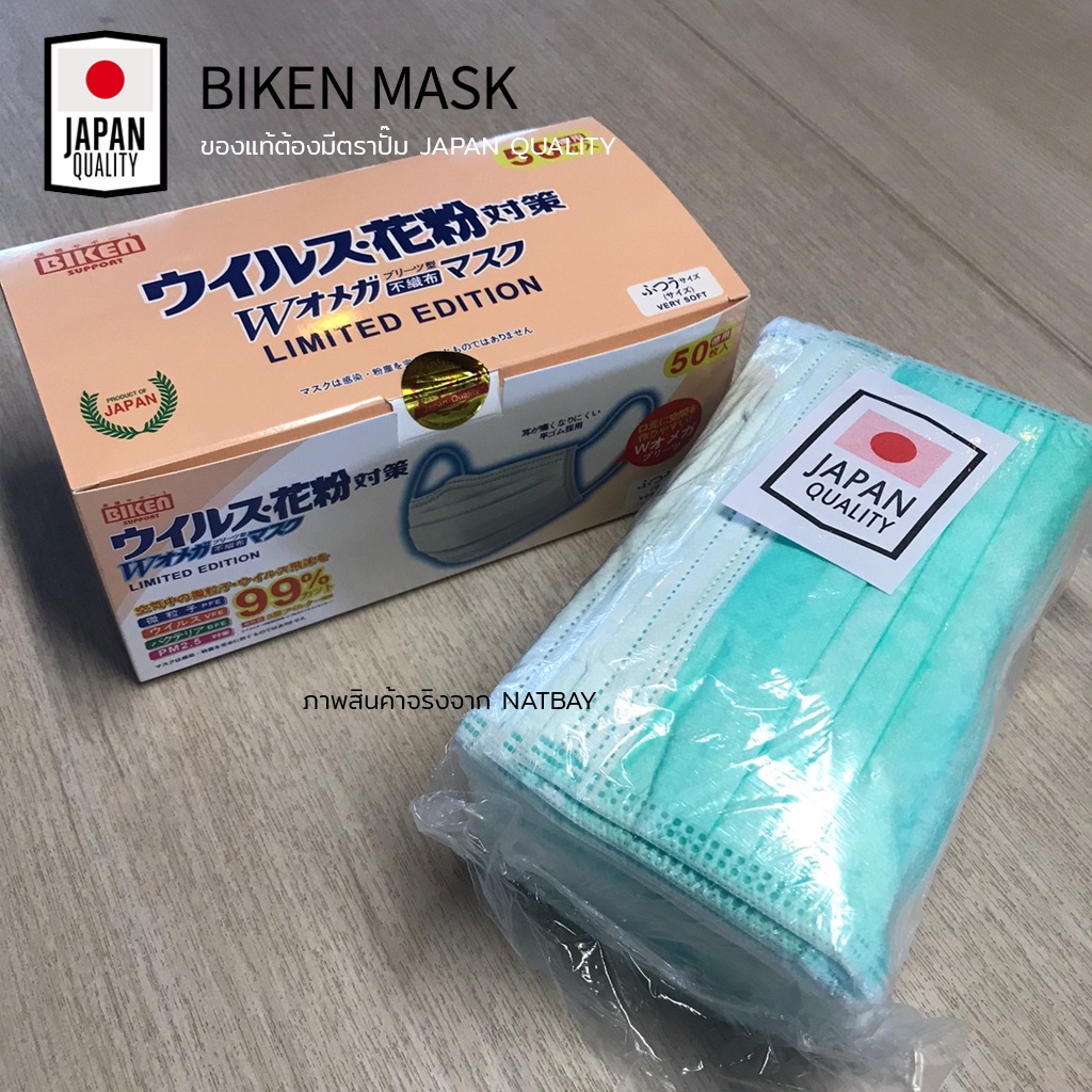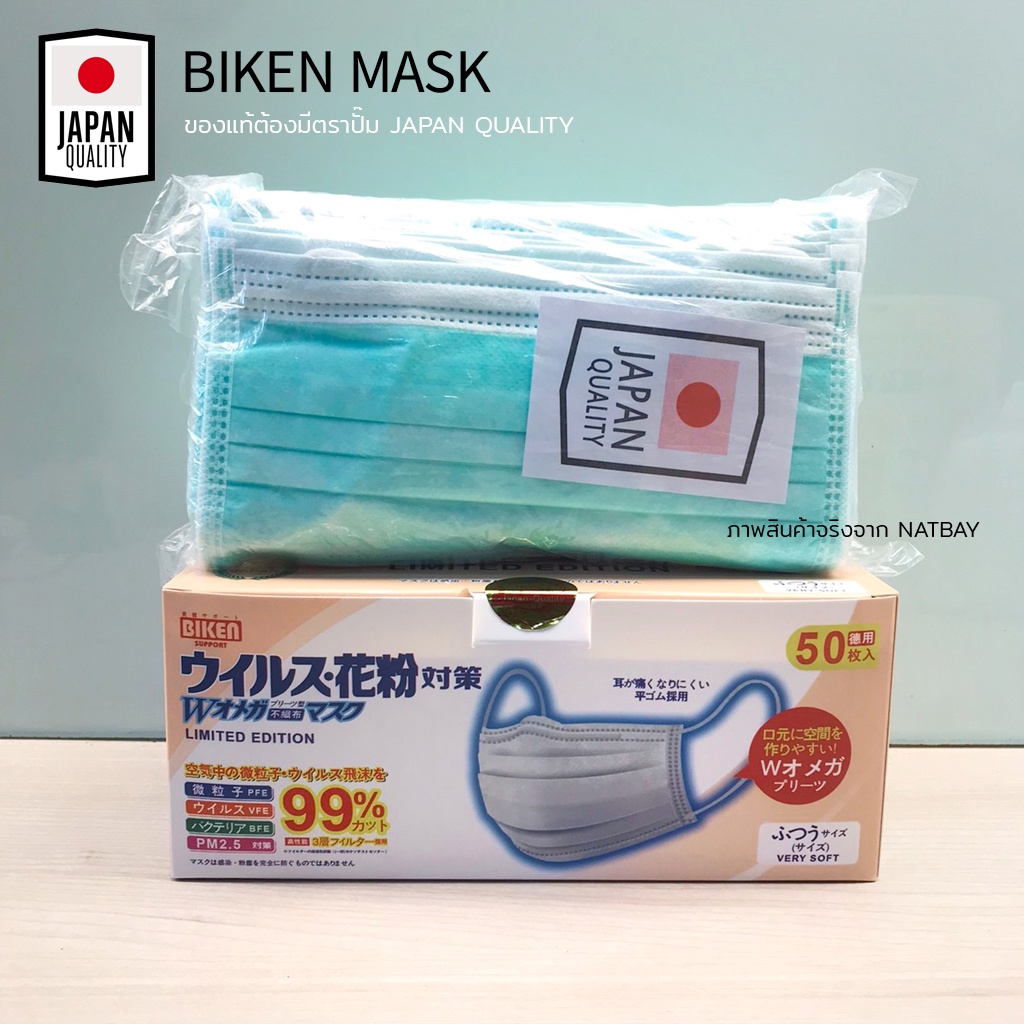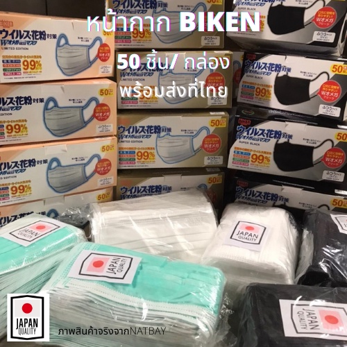 หน้ากากBiken แมส หน้ากากอนามัยญี่ปุ่น ของแท้ มีตราปั๊มมาตราฐาน 1กล่อง/50ชิ้น พร้อมส่ง
