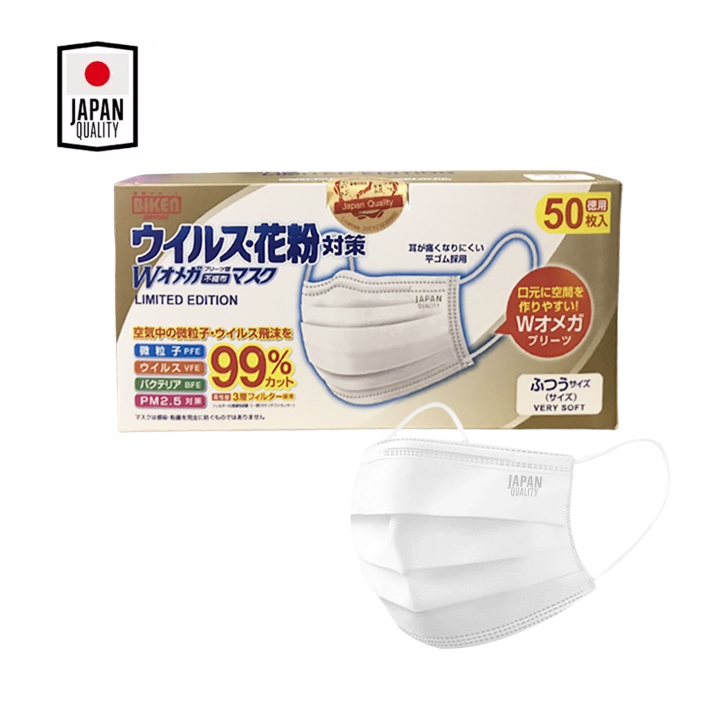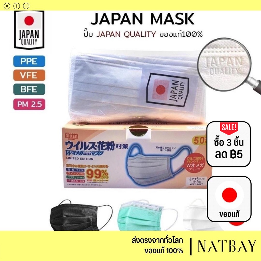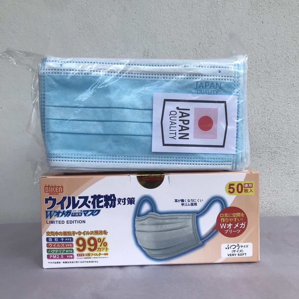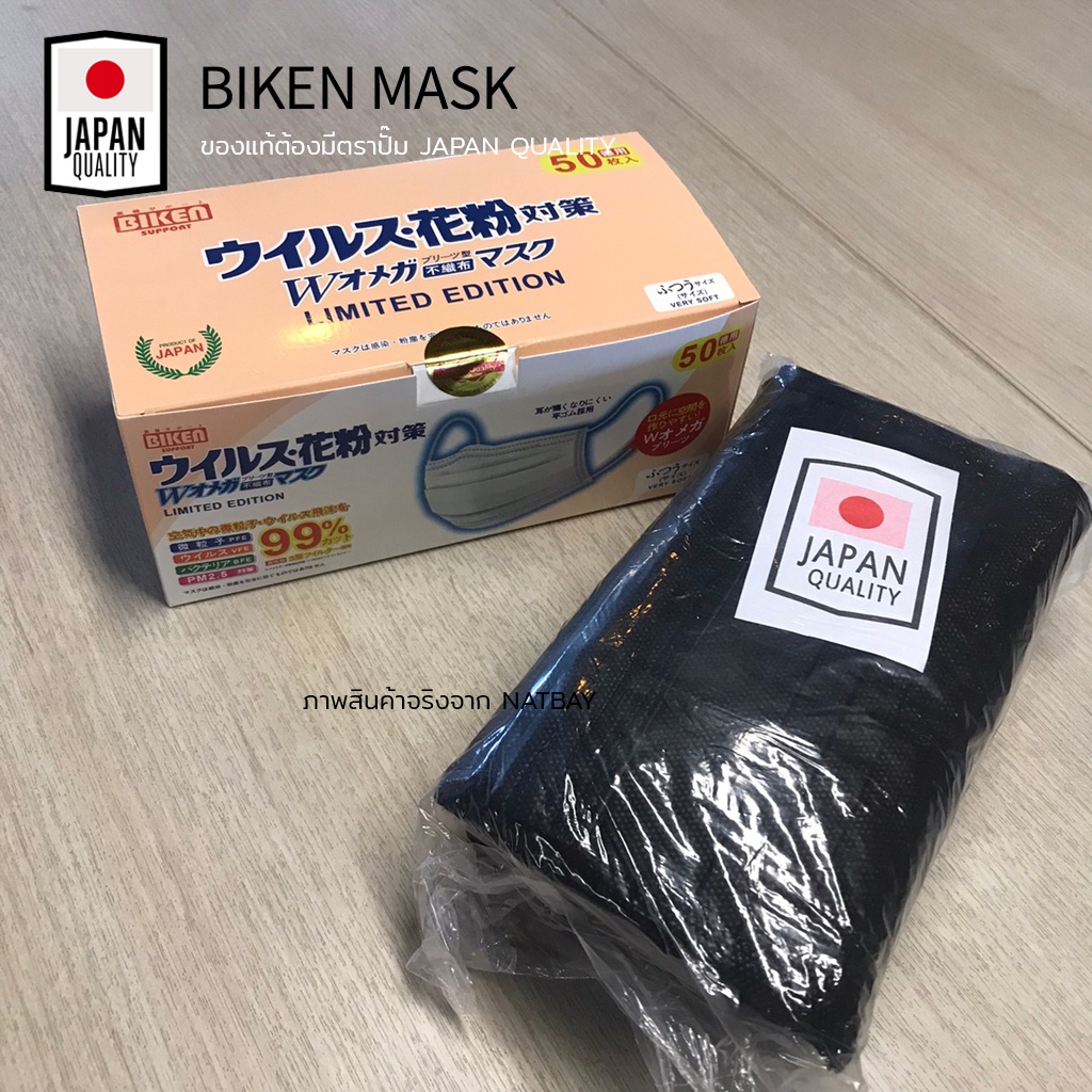 หน้ากากBiken แมส หน้ากากอนามัยญี่ปุ่น ของแท้ มีตราปั๊มมาตราฐาน 1กล่อง/50ชิ้น พร้อมส่ง