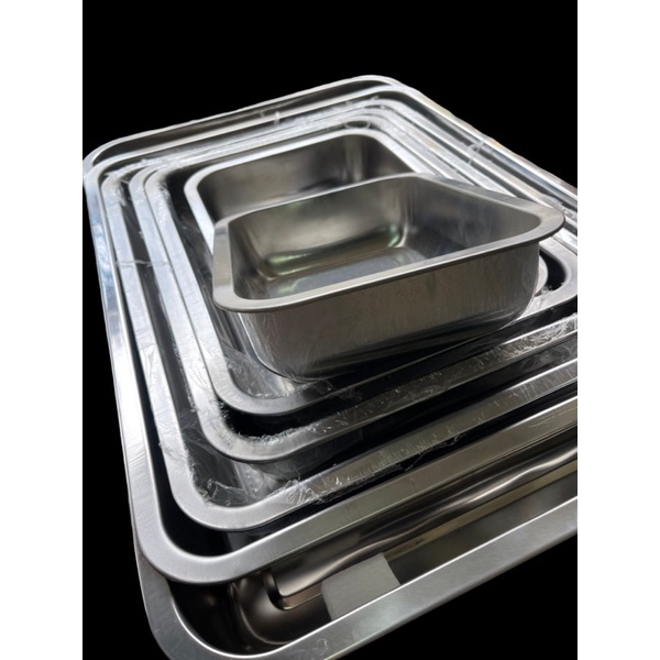 (ลด 50.- โค้ด DETSEP199) ถาดข้าวแกงสแตนเลสเหลี่ยมความลึก7cm