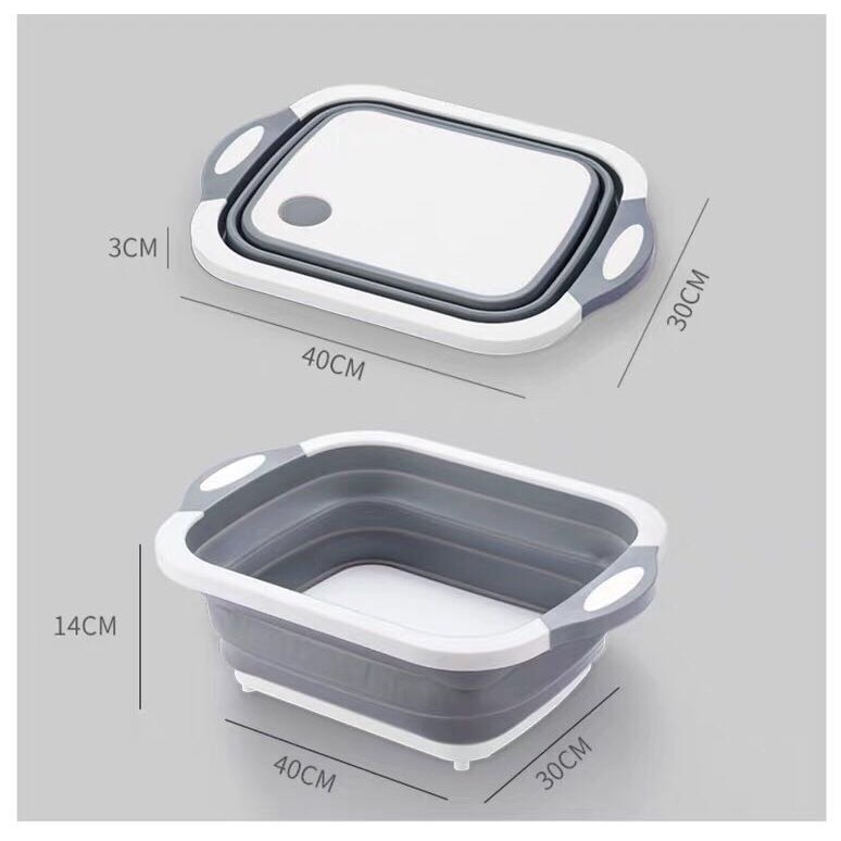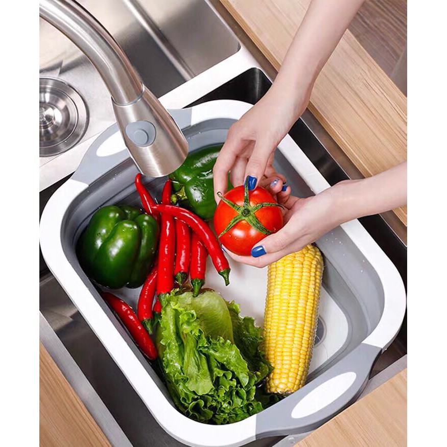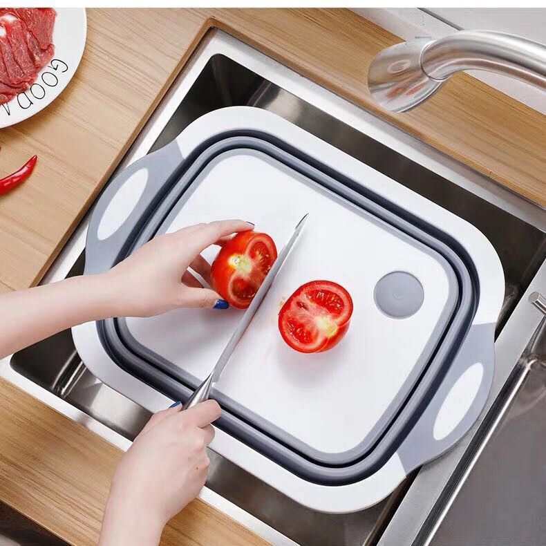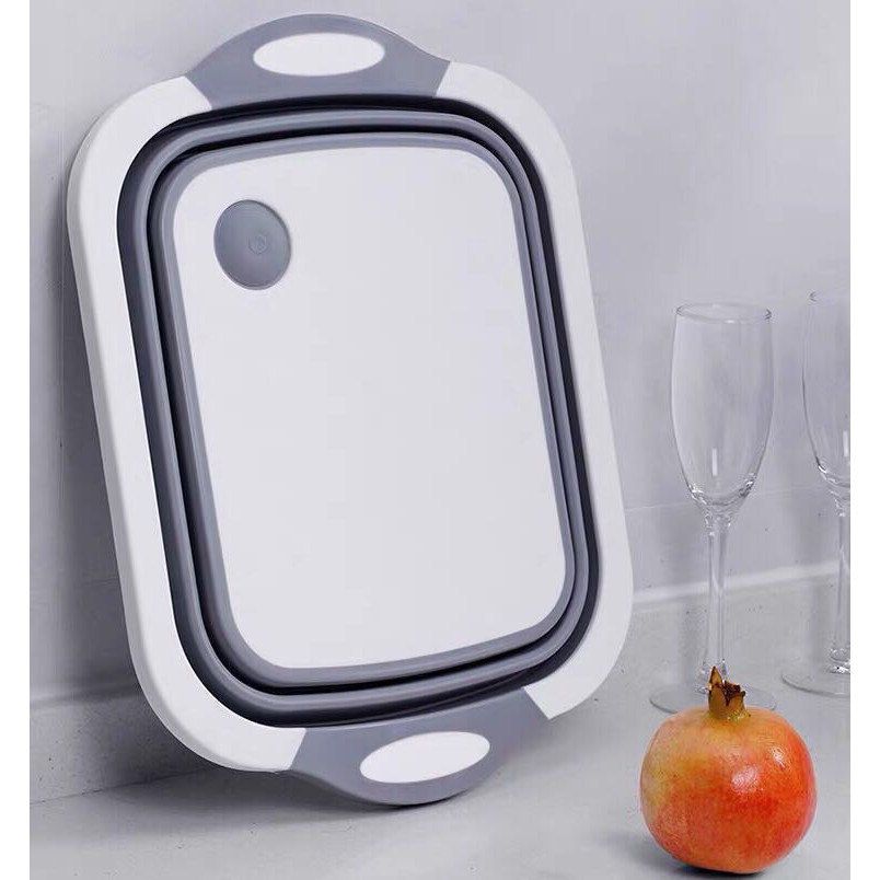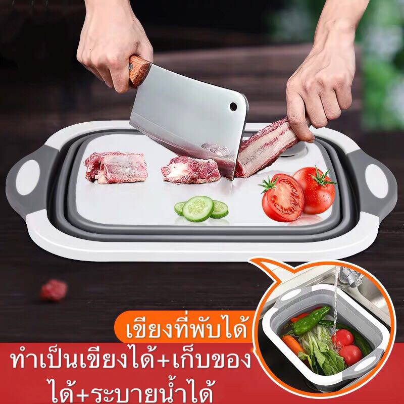 เขียงอเนกประสงค์ อุปกรณ์ในครัวเรือน 3 in 1 กะละมังพับได้ ล้างผัก/หั่น/ระบายน้ำ กะละมังพกพา