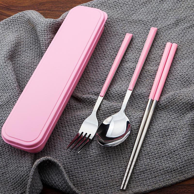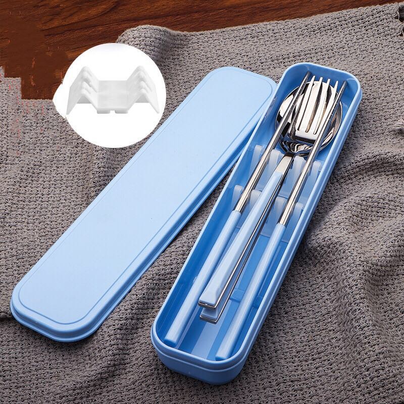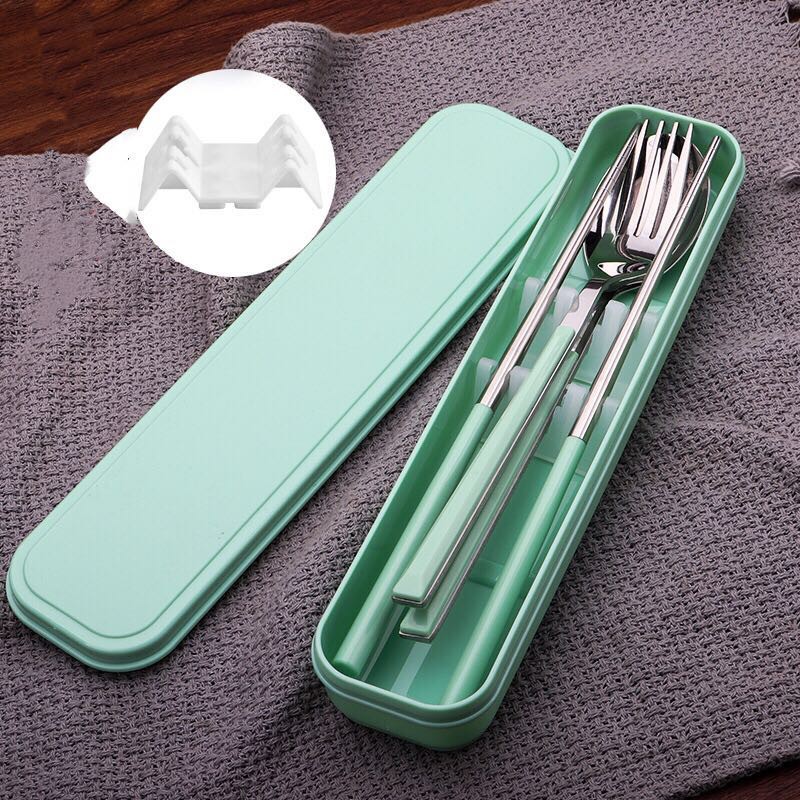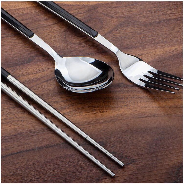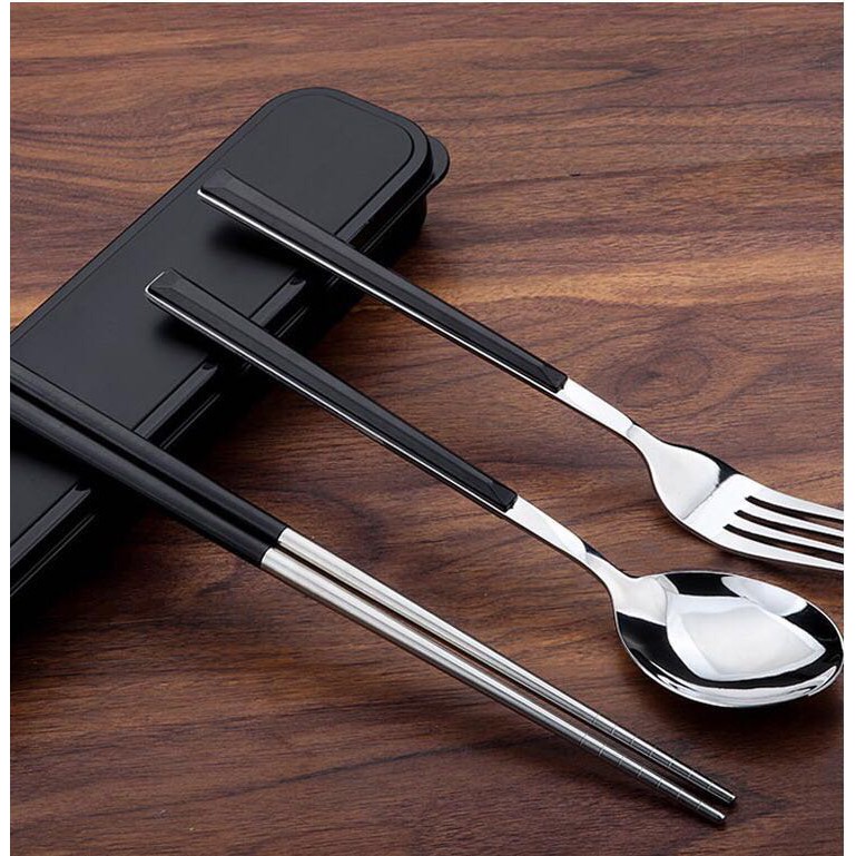ชุดช้อนส้อม+ตะเกียบ ช้อนส้อมสเตนเลส ชุดอุปกรณ์รับประทานอาหาร พร้อมกล่องใส่อุปกรณ์แบบพกพา มี 4 สีให้เลือก