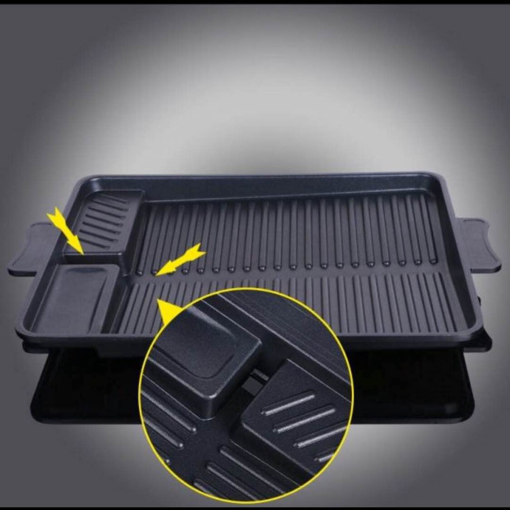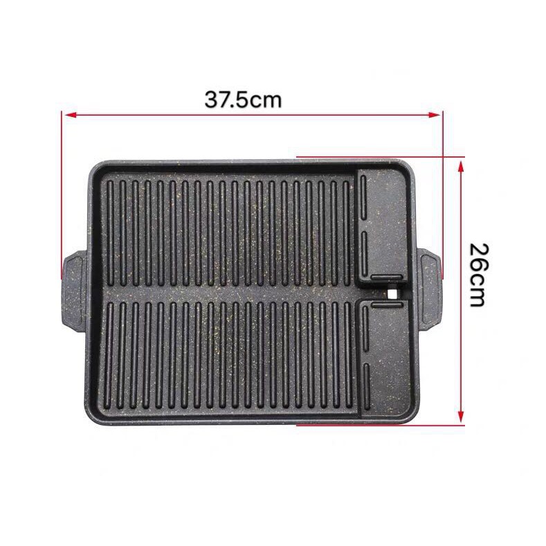 กระทะ กระทะย่างเนื้อ กระทะปิ้งย่างเคลือบหินอ่อน ไม่ติดกระทะ เตาปิ้งย่าง สไตล์เกาหลี ทรงสี่เหลี่ยมผืนผ้า ขนาด 37.5*26 ซม