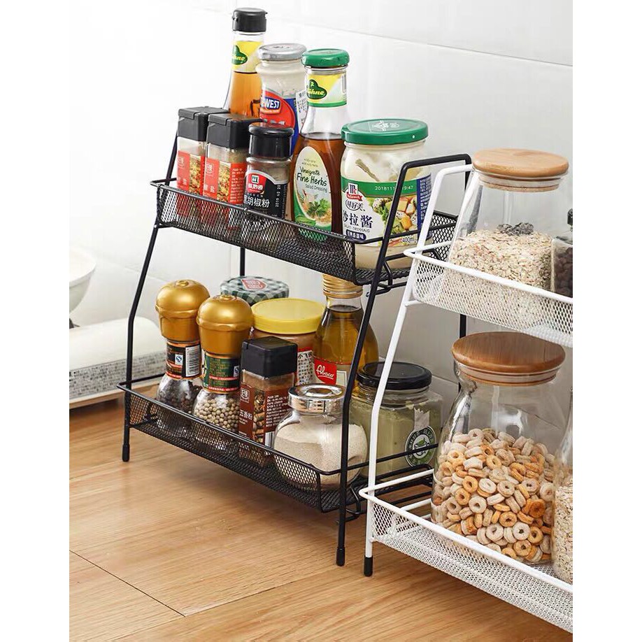 ชั้นวางเครื่องปรุง 2ชั้น เหล็กเคลือบกันสนิม ฐานตรงวางขวดสูงได้ ที่วางเครื่องปรุง ชั้นวางขวดเครื่องปรุง ชั้นวางของในครัว