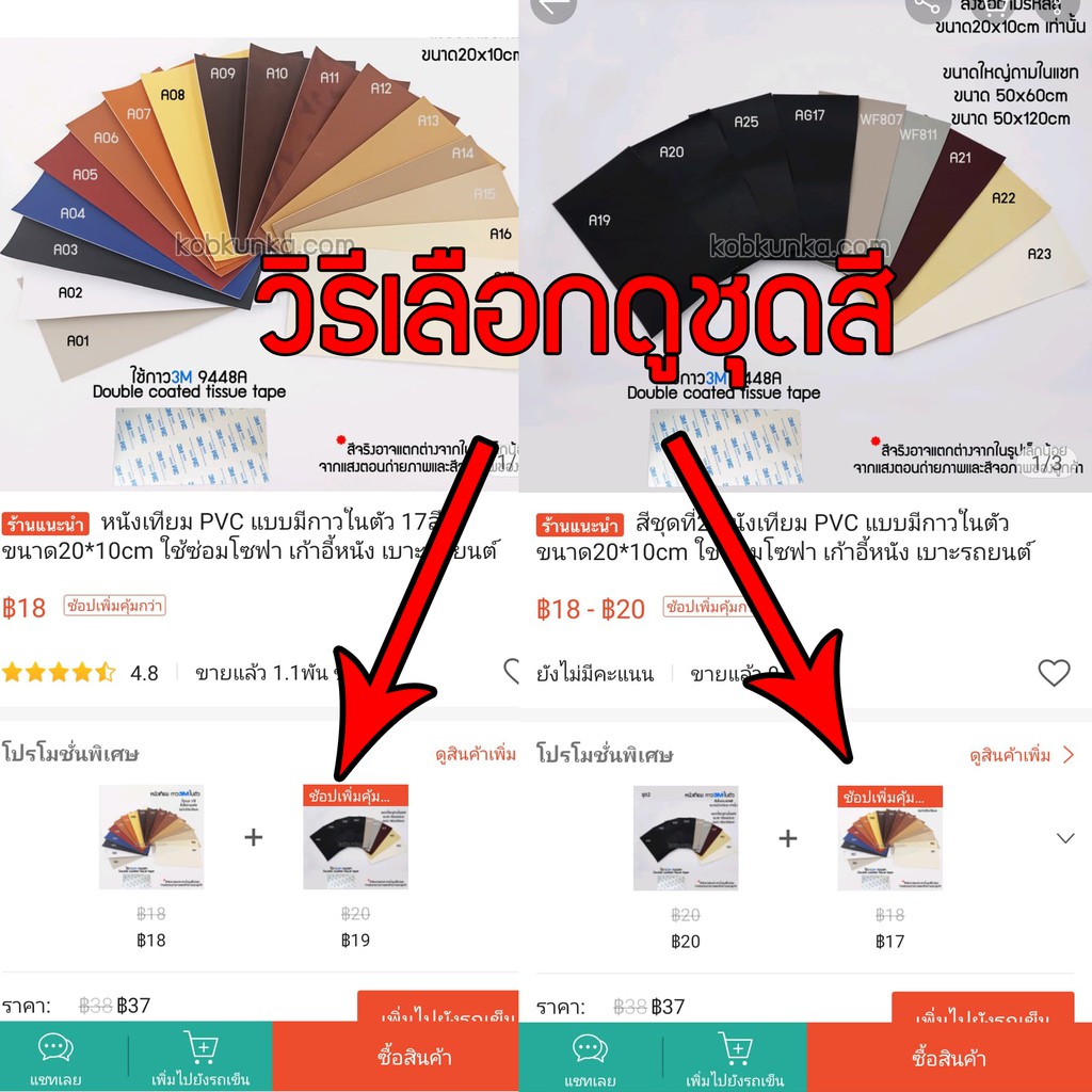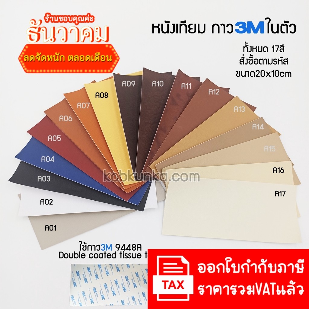 หนังเทียม PVC แบบมีกาวในตัว 17สี ขนาด20*10cm ใช้ซ่อมโซฟา เก้าอี้หนัง เบาะรถยนต์