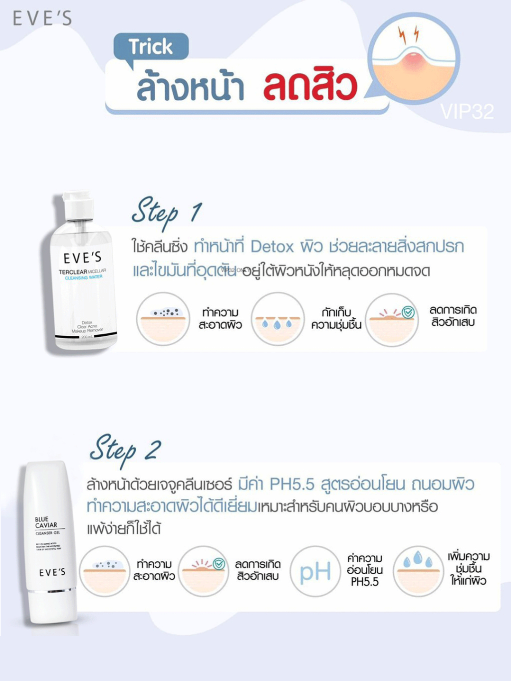 EVES อีฟส์ คลีนซิ่ง อีฟส์ 200 ml. ทำความสะอาดผิว หน้า เครื่องสำอาง สิ่งสกปรก ลดการเกิดสิว อ่อนโยน คนท้องใช้ได้