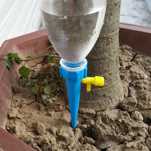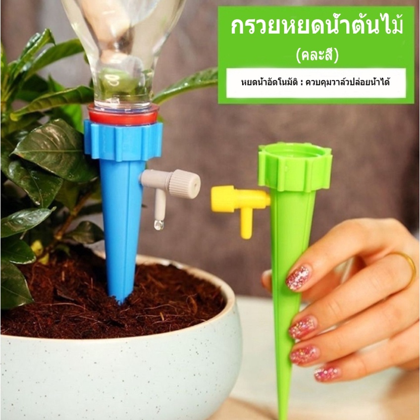 กรวยหยดน้ำรดต้นไม้ หยดน้ำอัตโนมัติ หัวน้ำหยด บัวรดน้ำ กร วยหยดน้ำอัตโนมัติ พร้อมวาล์วคุม ใช้กับขวดน้ำอัดลม คละสี