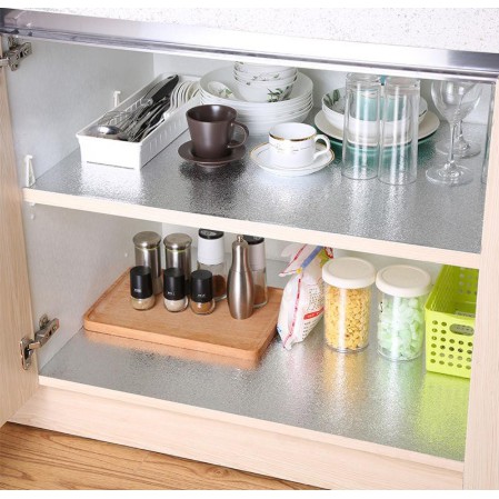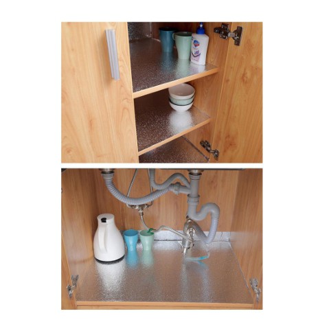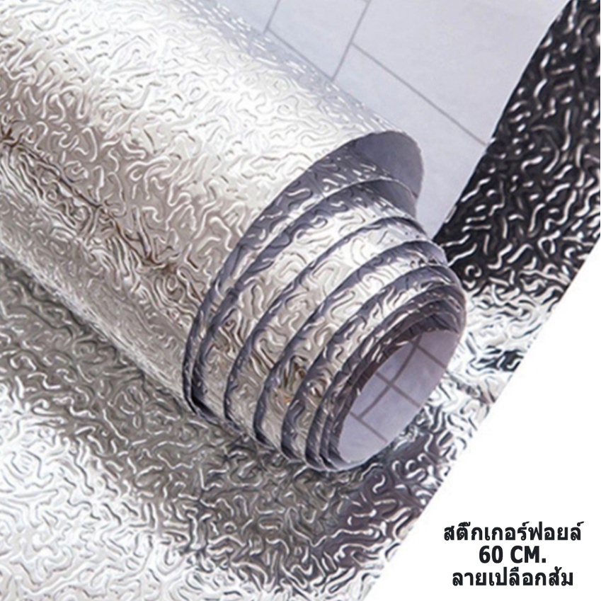มี 2 ขนาด สติกเกอร์ฟอยล์อลูมิเนียม กันน้ำมันกระเด็น กันความร้อน ใช้สำหรับติดผนังห้องครัว