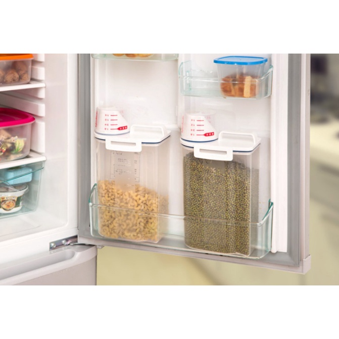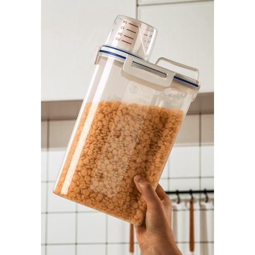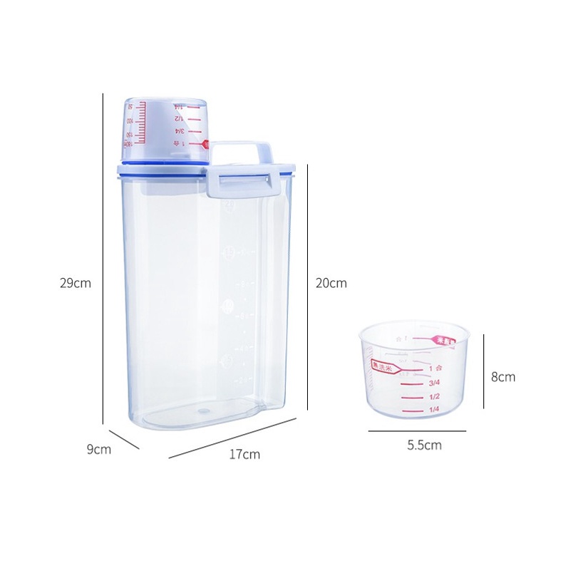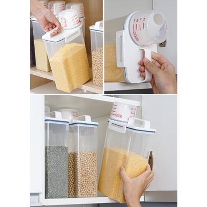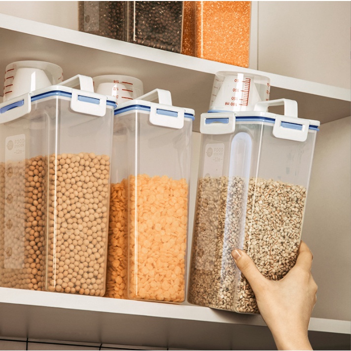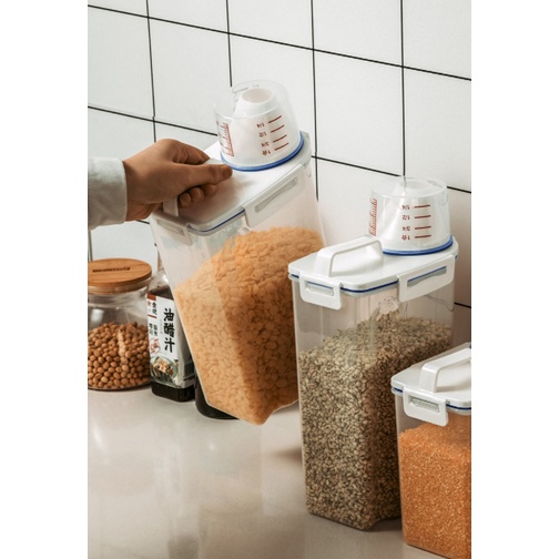 กล่องพาสติกเก็บเมล็ดข้าวสาร เมล็ดธัญพืช ที่เก็บข้าวสาร ภาชนะเก็บข้าว กันแมลง มด ความจุ 2 Kg. พร้อมถ้วยตวง