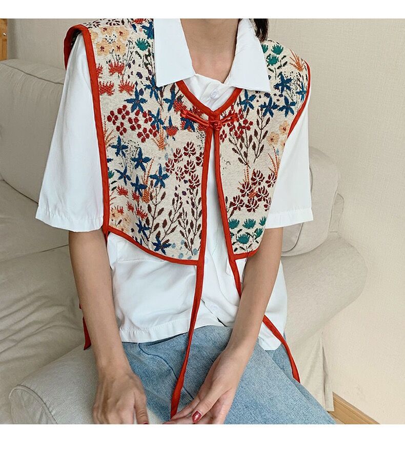 CICI ผ้าคลุมไหล่ ชนิดผ้าซาติน ปักลายดอกไม้ สไตล์วินเทจ สไตล์วินเทจ
