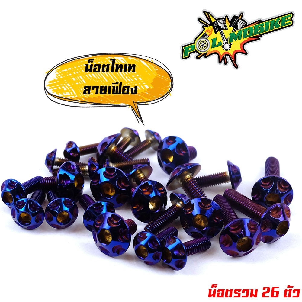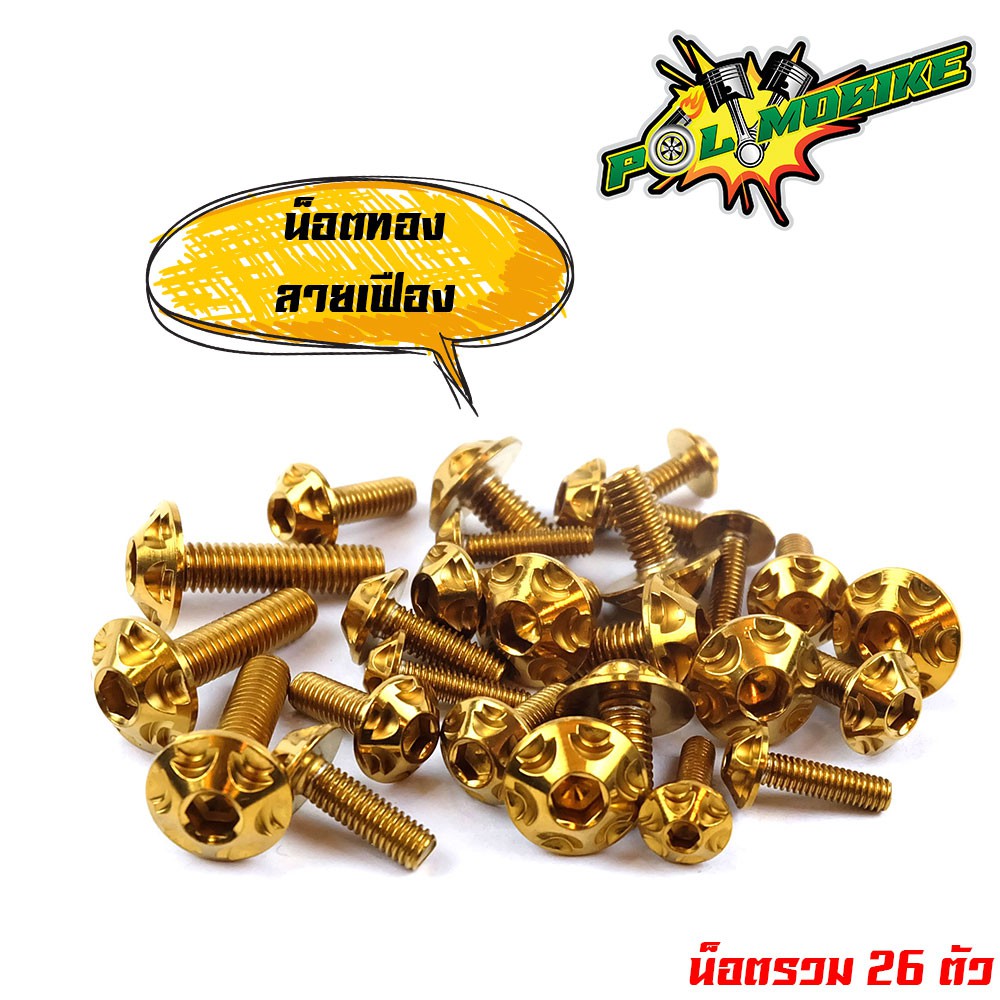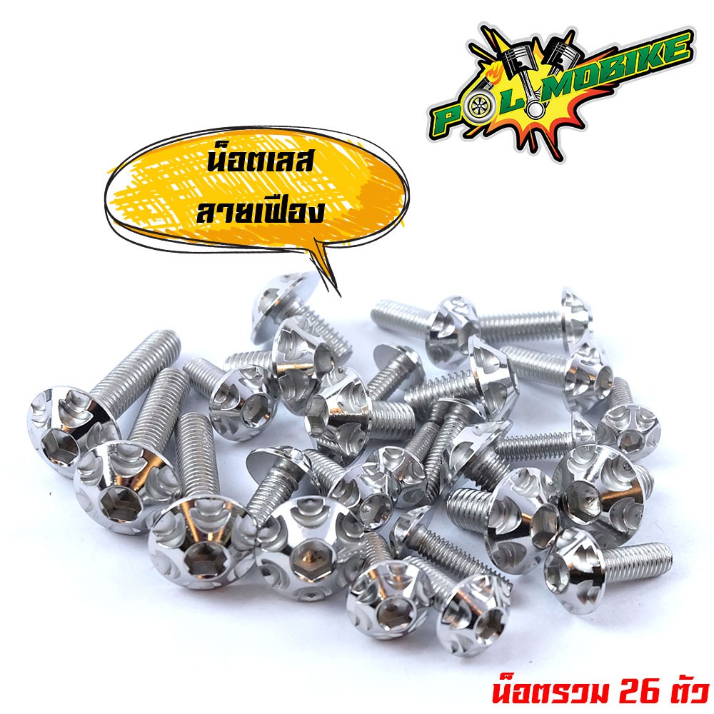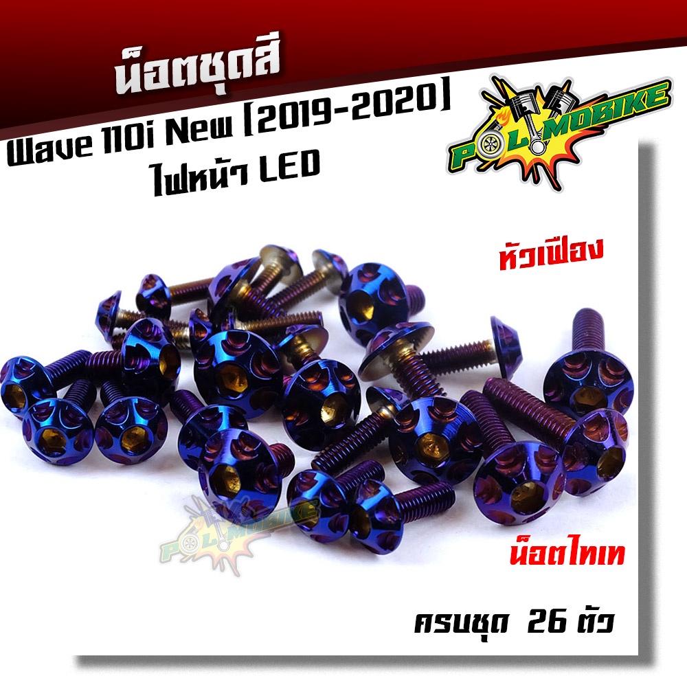 (ส่งฟรี) น็อตชุดสี เวฟ110i (2019-2023) ไฟหน้า LED หัวเฟือง ++แถมน็อตตะกร้า (ครบชุดมี 26ตัว)เลสแท้100