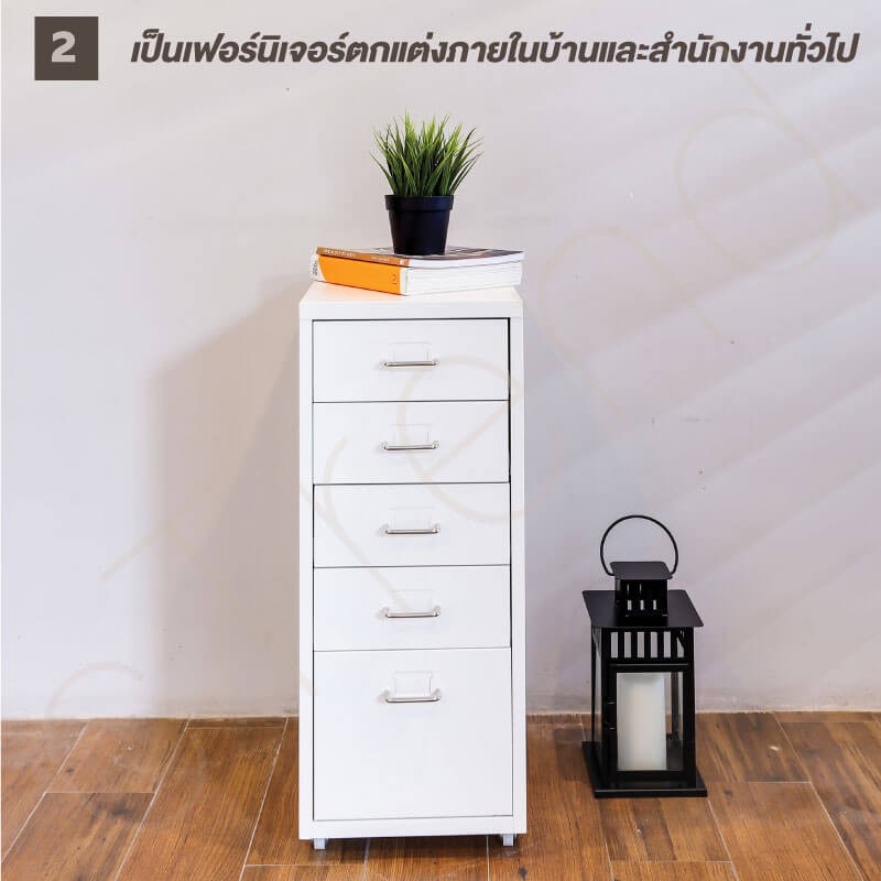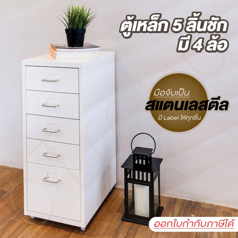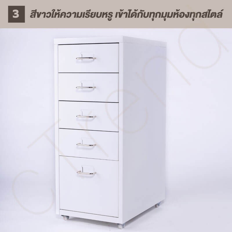 Ctrend SL1-White 5-Drawer ตู้ลิ้นชักเหล็ก 5ชั้น มีล้อ เลื่อน