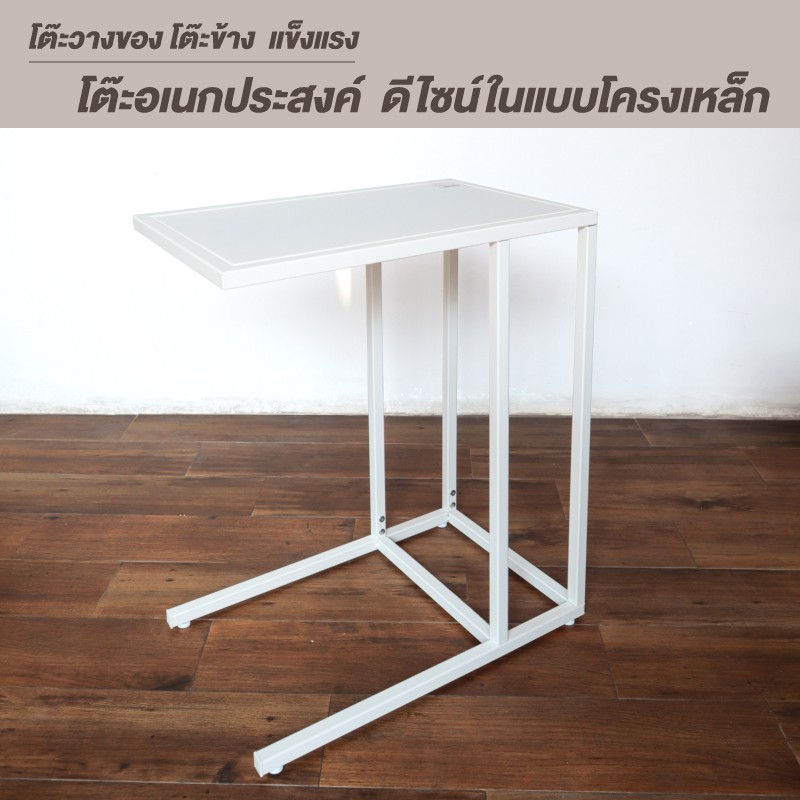 Ctrend โต๊ะเอนกประสงค์ วางโน้ตบุ้ค Steel side table สีขาว