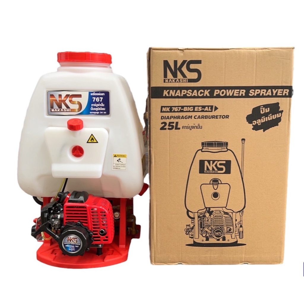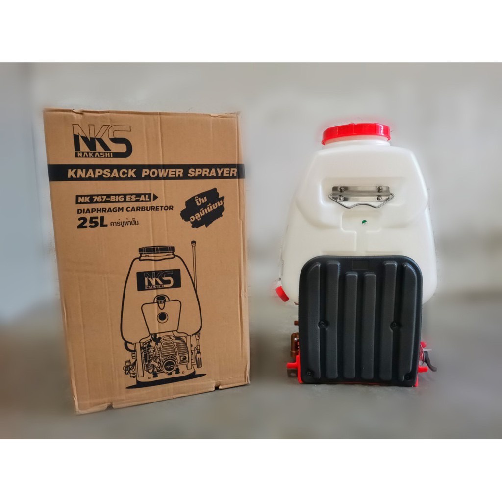 เครื่องพ่นยา เครื่องฉีดยา ถังพ่นยา 767 คาบูผ้าปั๊ม 2 จังหวะ ยี่ห้อ nakashi/spider/คุ้มคิง 25 ลิตร