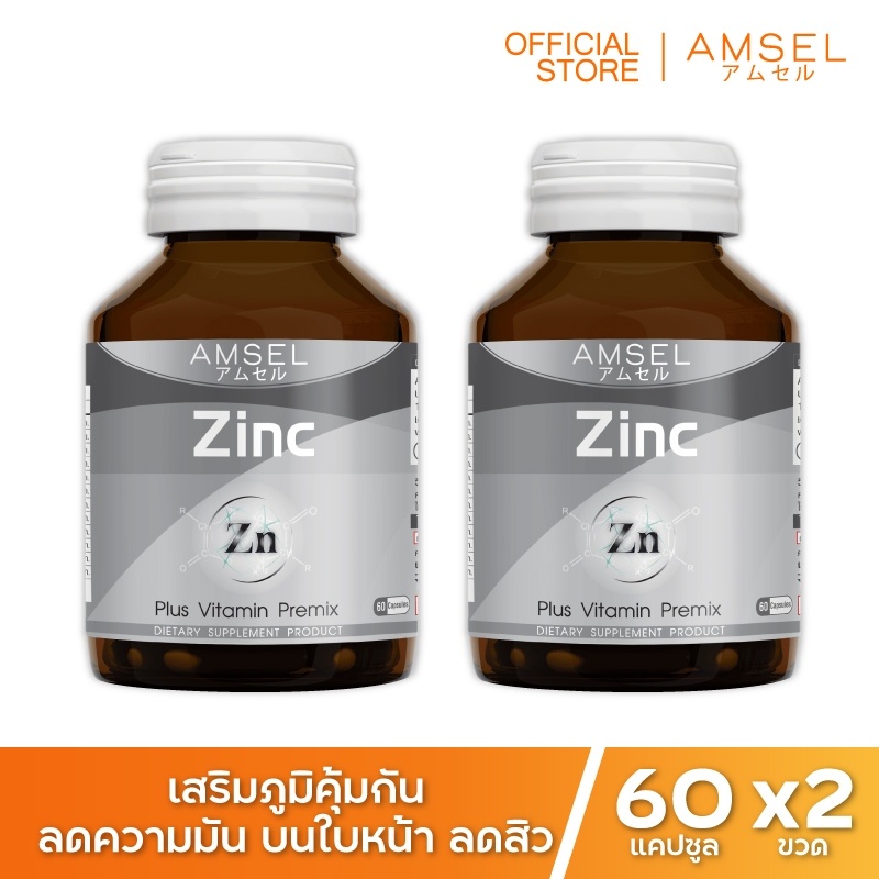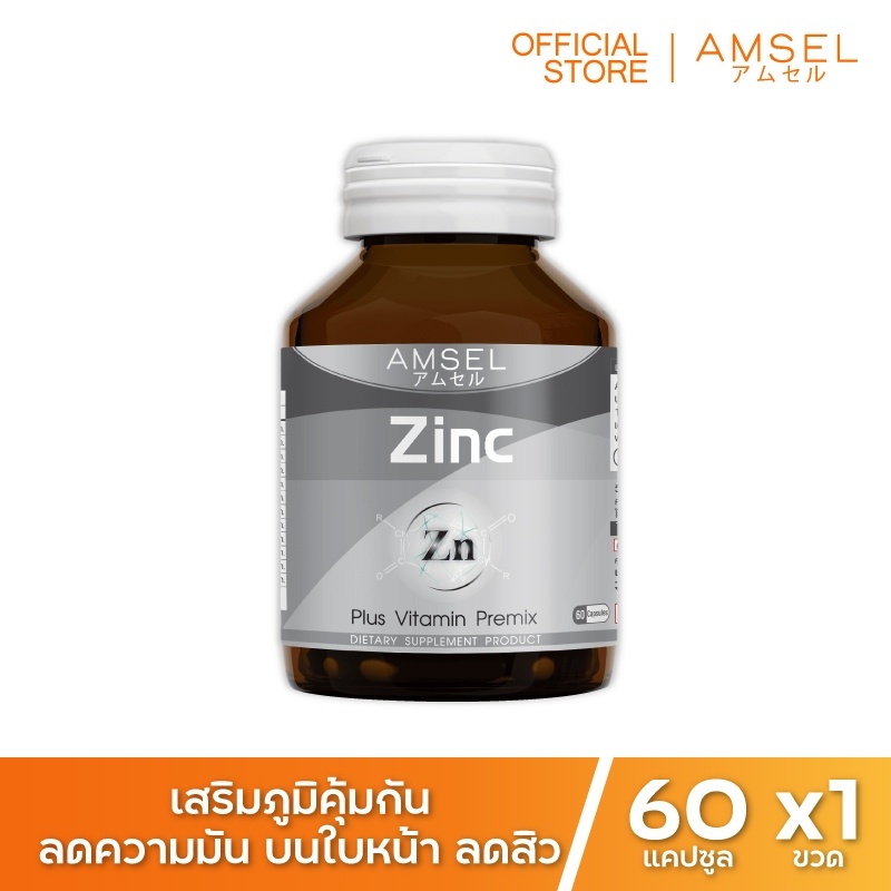 Amsel Zinc Plus Vitamin Premix แอมเซล ซิงค์ พลัส วิตามินพรีมิกซ์ (60 แคปซูล)