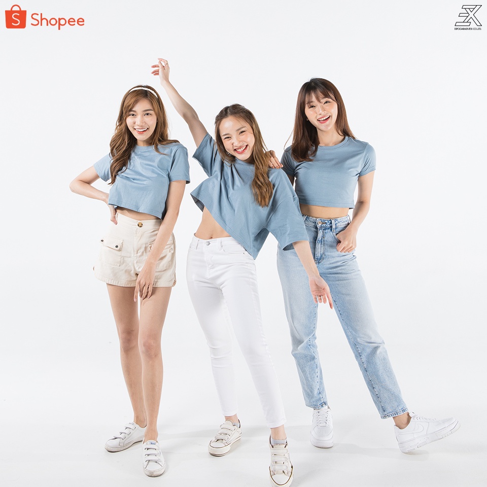 Expogarment เสื ้อครอป เอิร์ธโทน เอวลอย CROP แขนสั้น คอกลม ผ้าคอตตอน (ขาว เบจ ดำ น้ำตาล เขียว ฟ้าเทา)