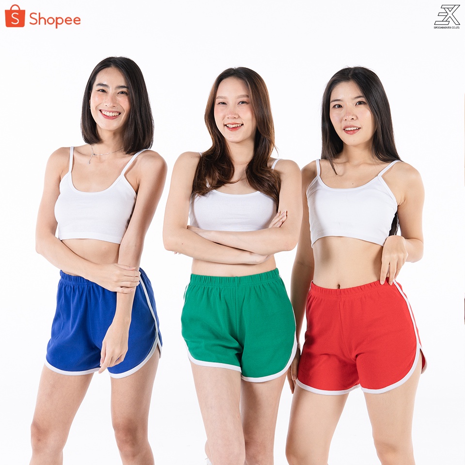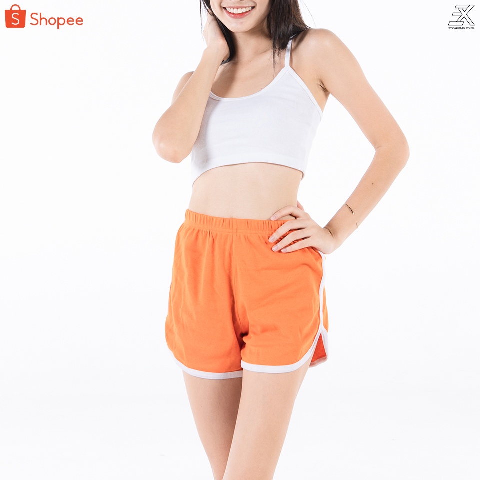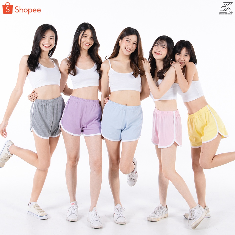 Expogarment กางเกงวอร์ม ขาสั้น แต่งแถบ เอวสูง เอวยางยืด กางเกงขาสั้น เอิร์ธโทน พาสเทล 12 สี