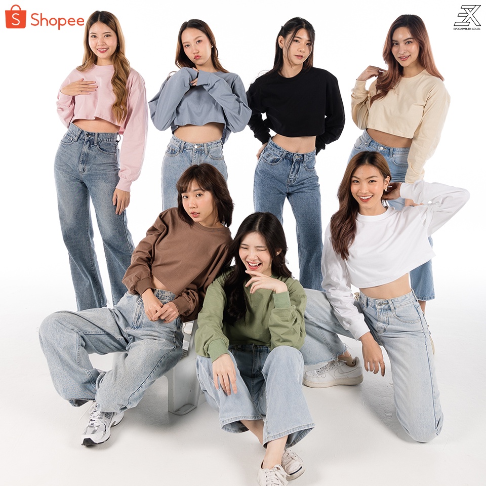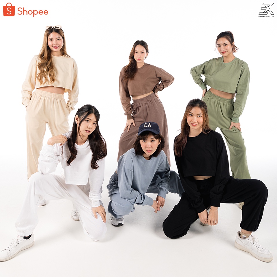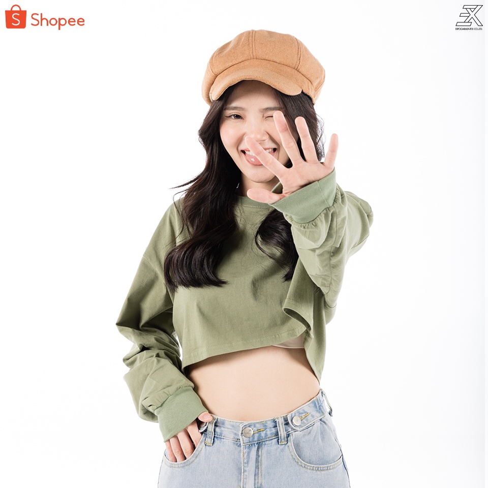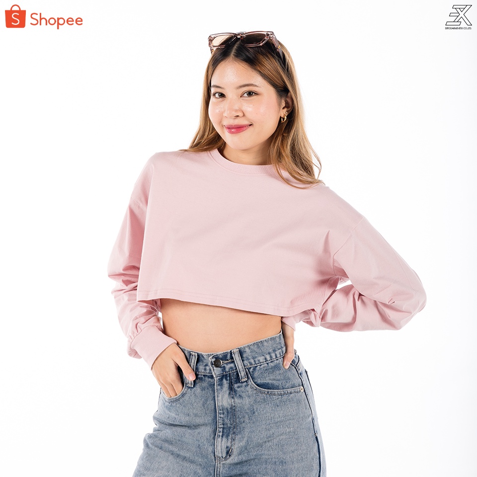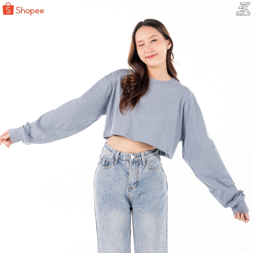 Expogarment เสื ้อครอปแขนยาว โอเวอร์ไซส์ เอิร์ธโทน Earthtone Oversize Crop ครอป เอวลอย แขนยาว คอกลม ผ้าคอตตอน