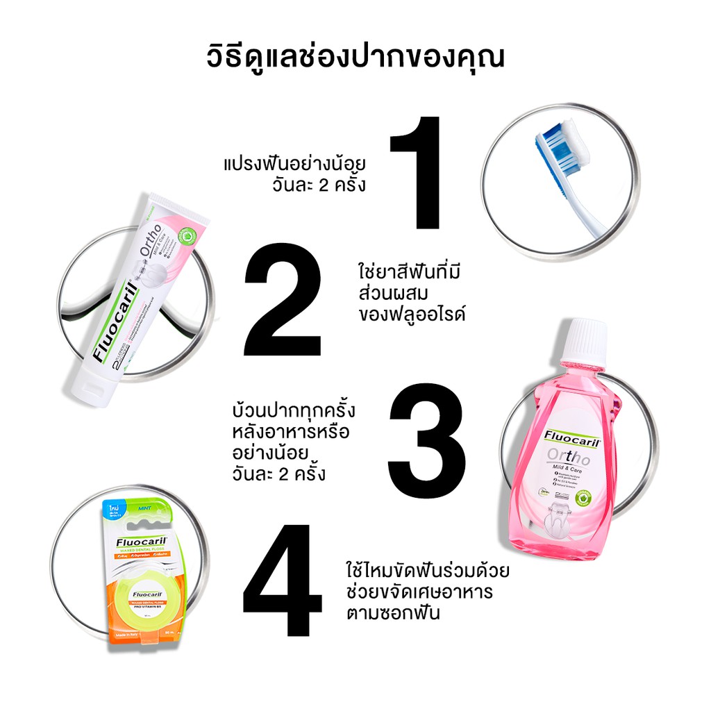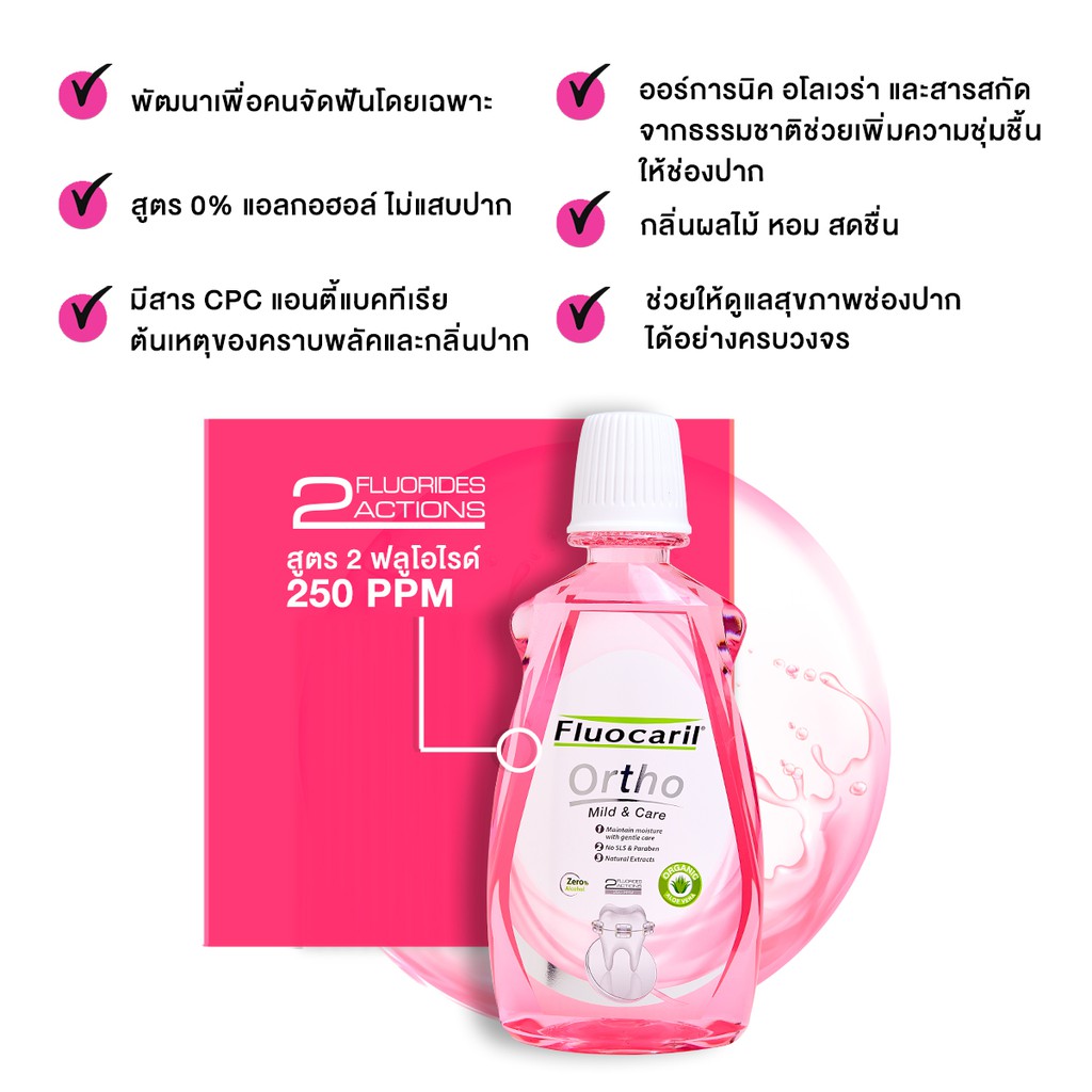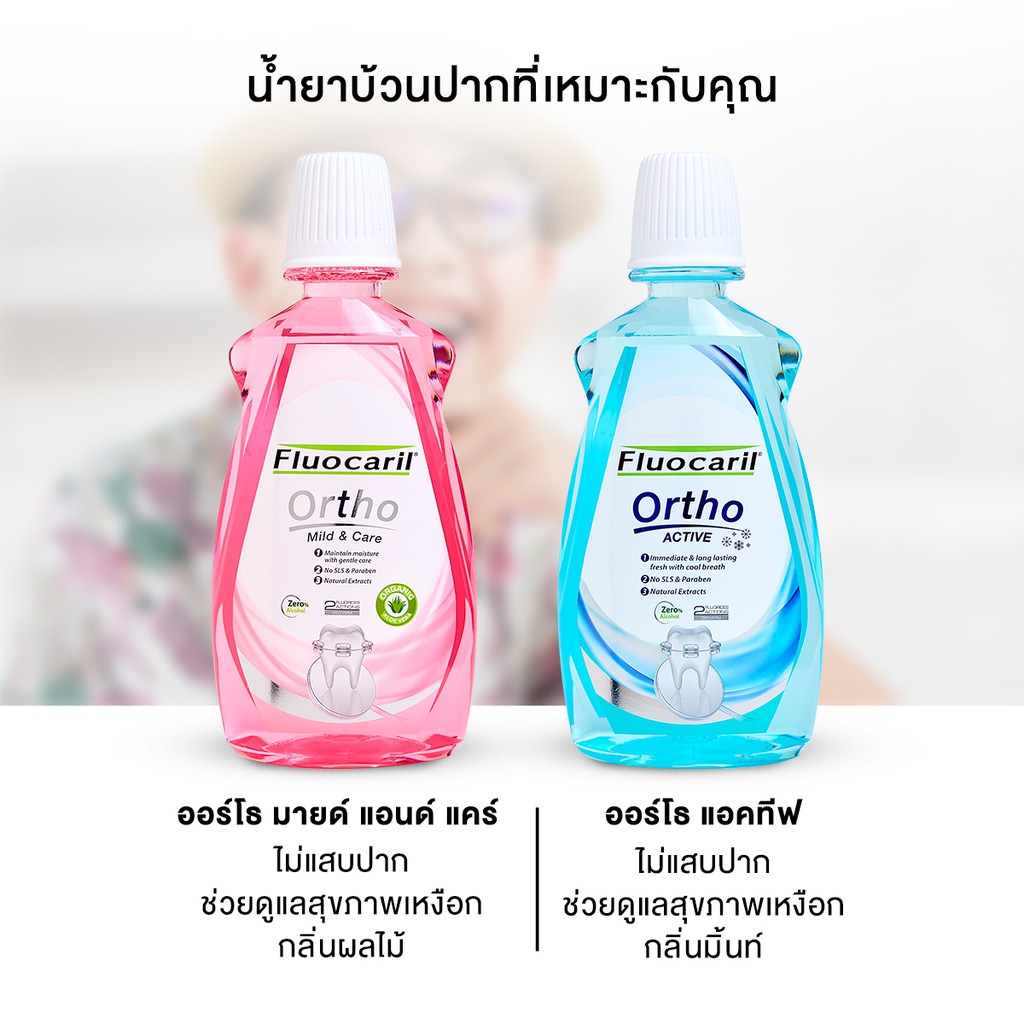 Fluocaril ฟลูโอคารีล น้ำยาบ้วนปาก สำหรับคนจัดฟัน มายด์ & แคร์ 500มล.