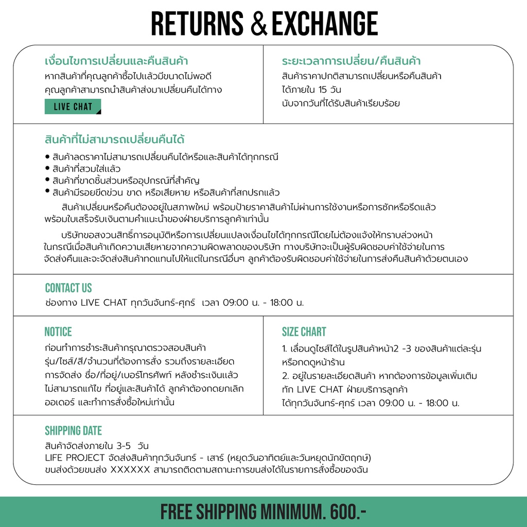 เก็บเงินปลายทาง · ความคุ้มครองสินค้า