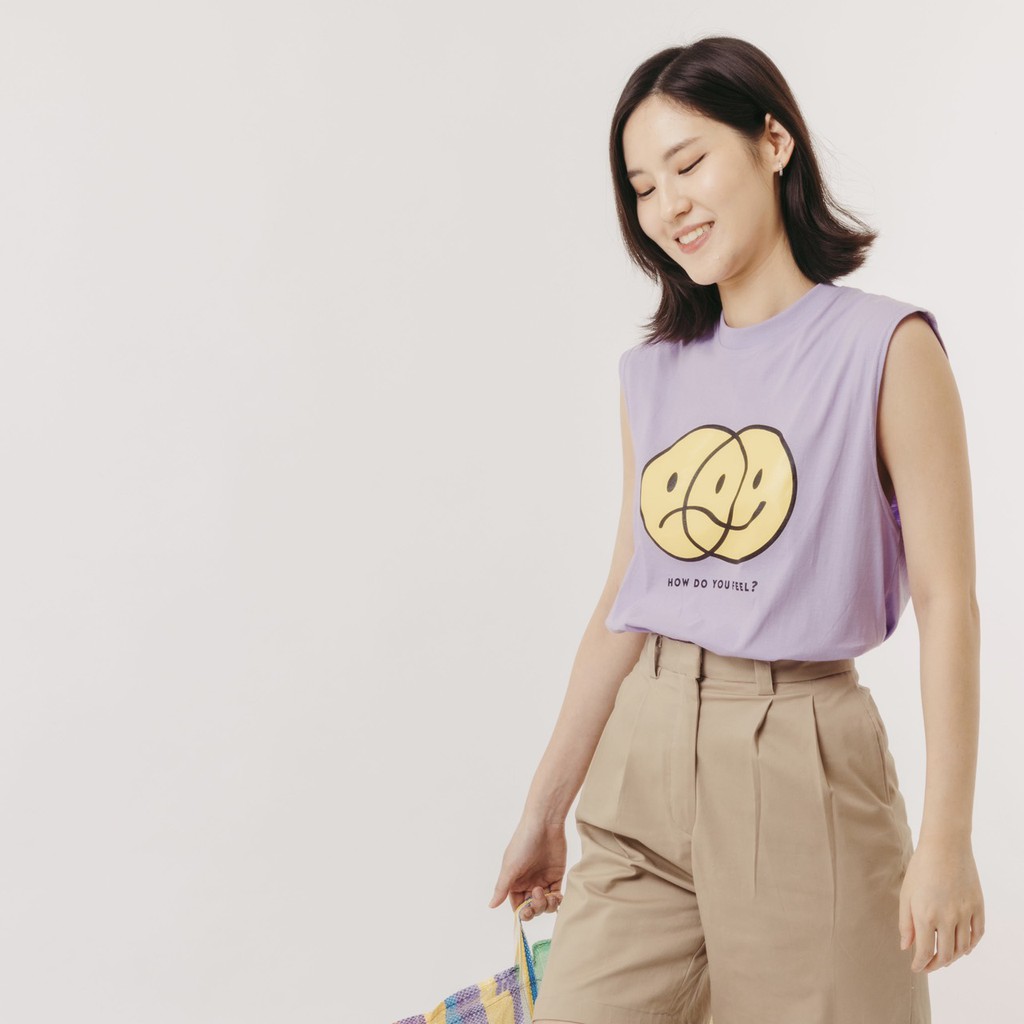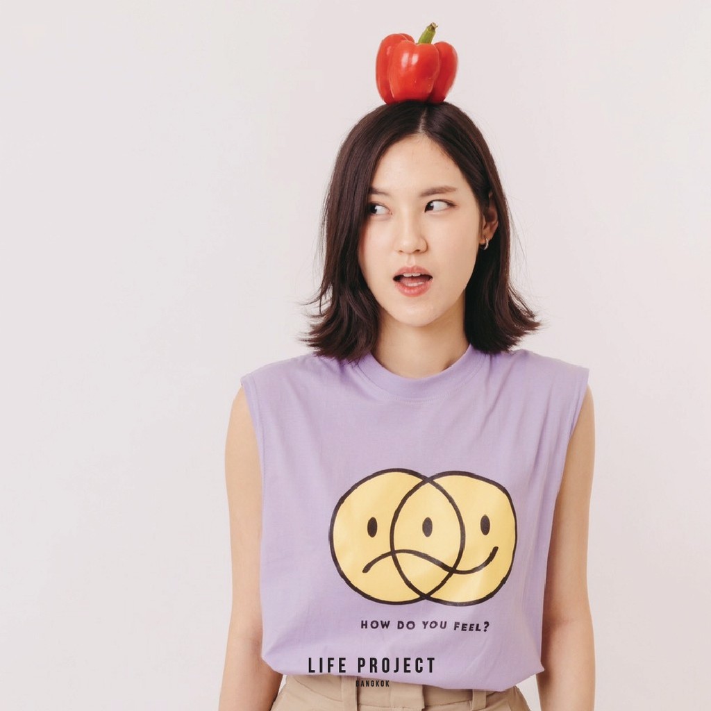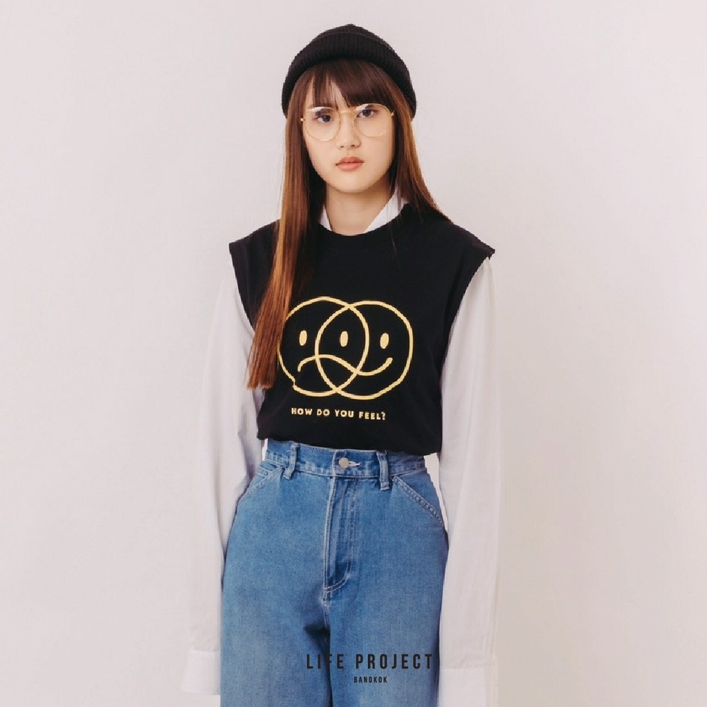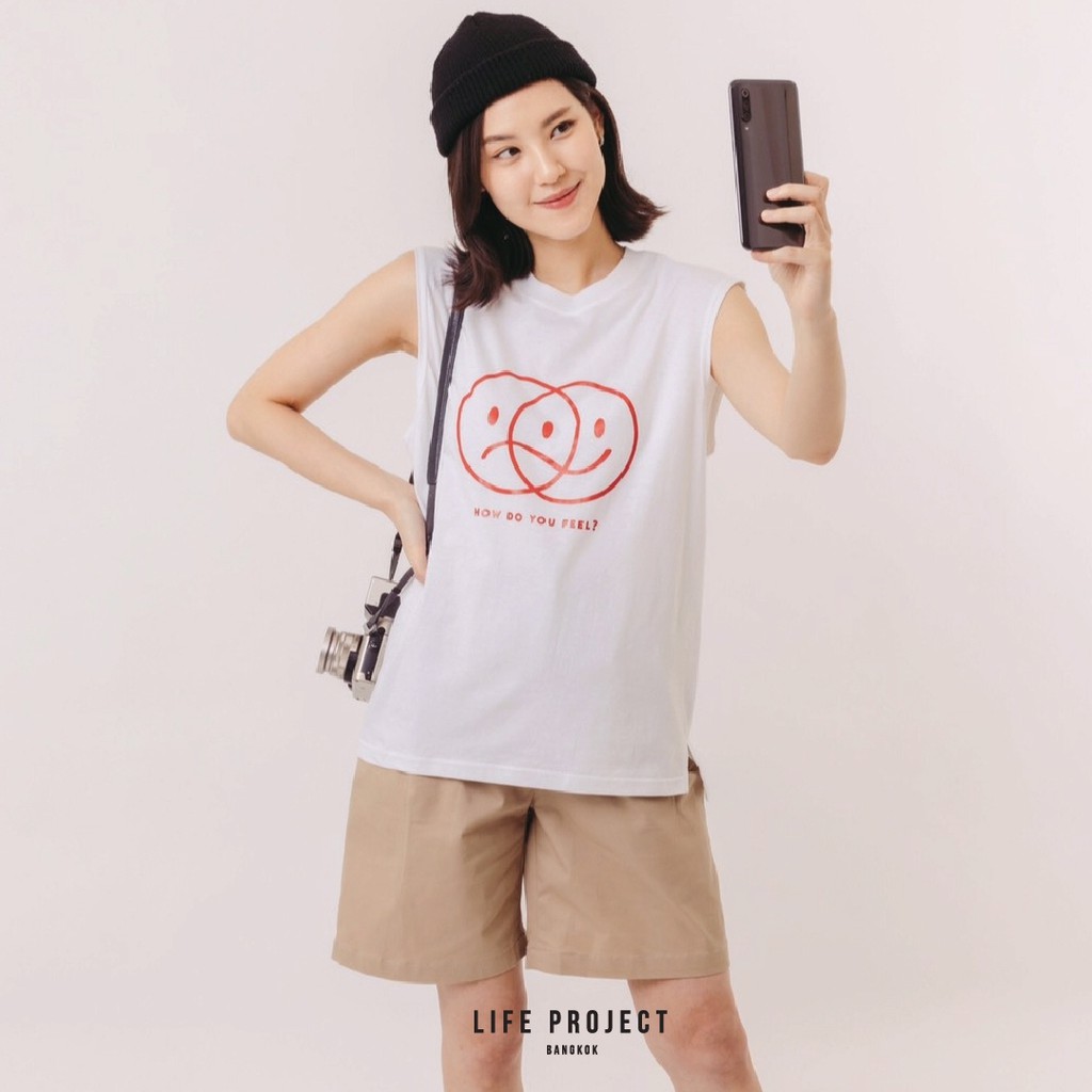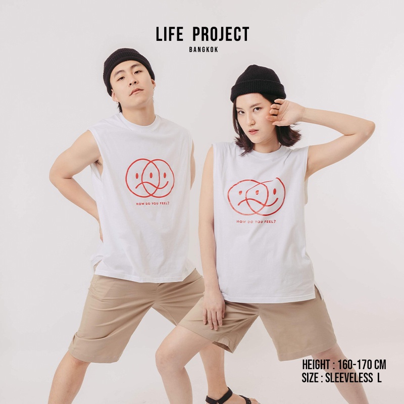 [LIFEPROJECTBKK] HOW DO YOU FEEL SLEEVELESS - เสื้อยืดคอกลมแขนกุดผ้าคอตตอนแท้100% สกรีนลายสมายลี่