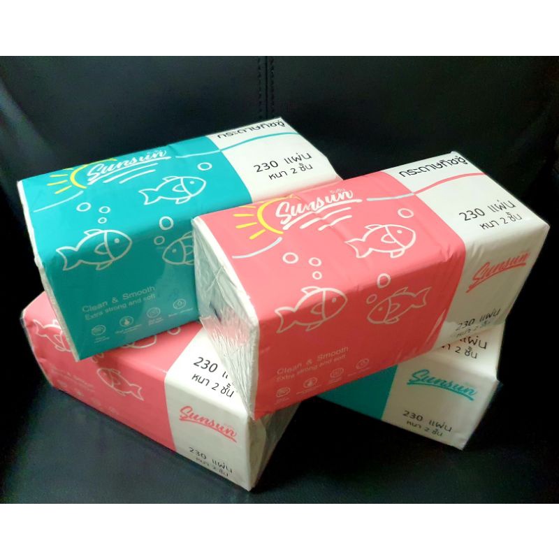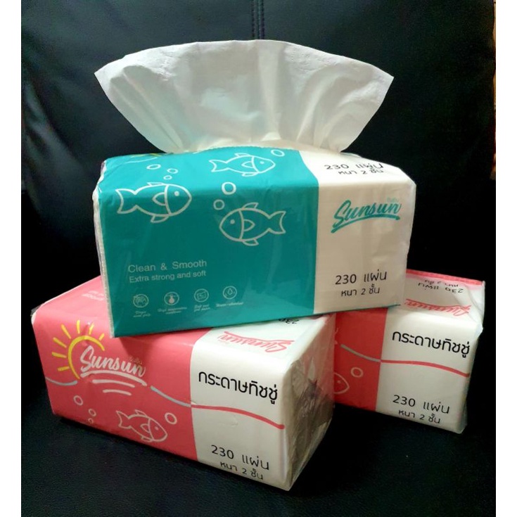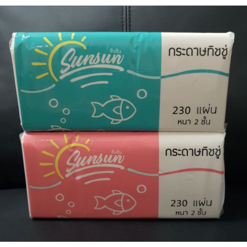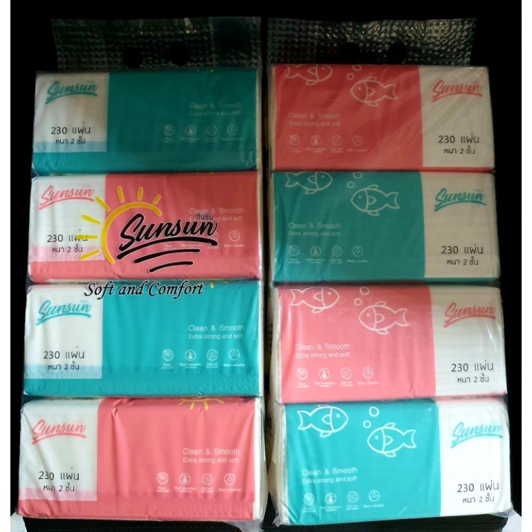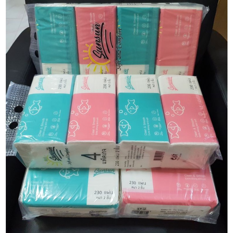 แพ็ค 4 ห่อใหญ่ 230 แผ่น หนา 2 ชั้น ทิชชู่ซันซัน กระดาษเช็ดหน้า พร้อมส่งจากโรงงานโดยตรง