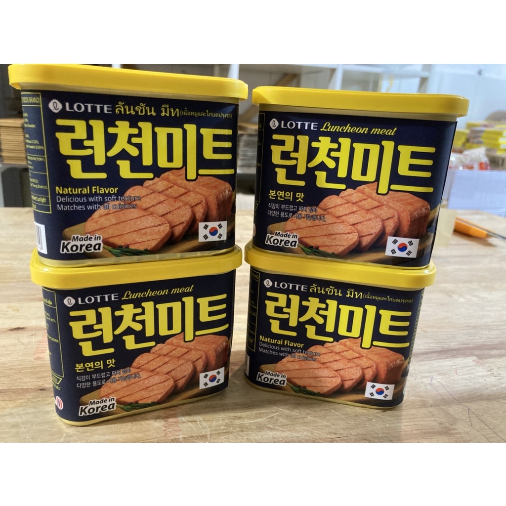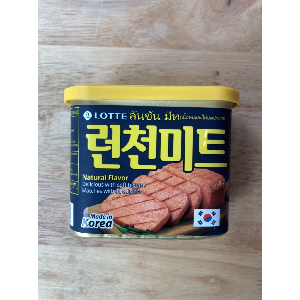 แฮมกระป๋องเกาหลี lotte brand luncheon meat 340g 롯데 런천미트 buy 5 pcs free แผ่นล้างจานเกาหลี susemi 1pcs