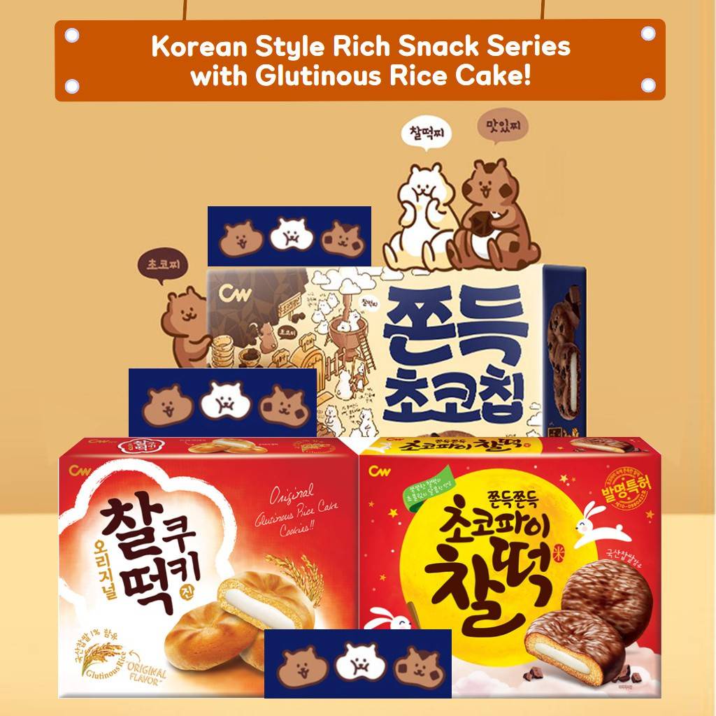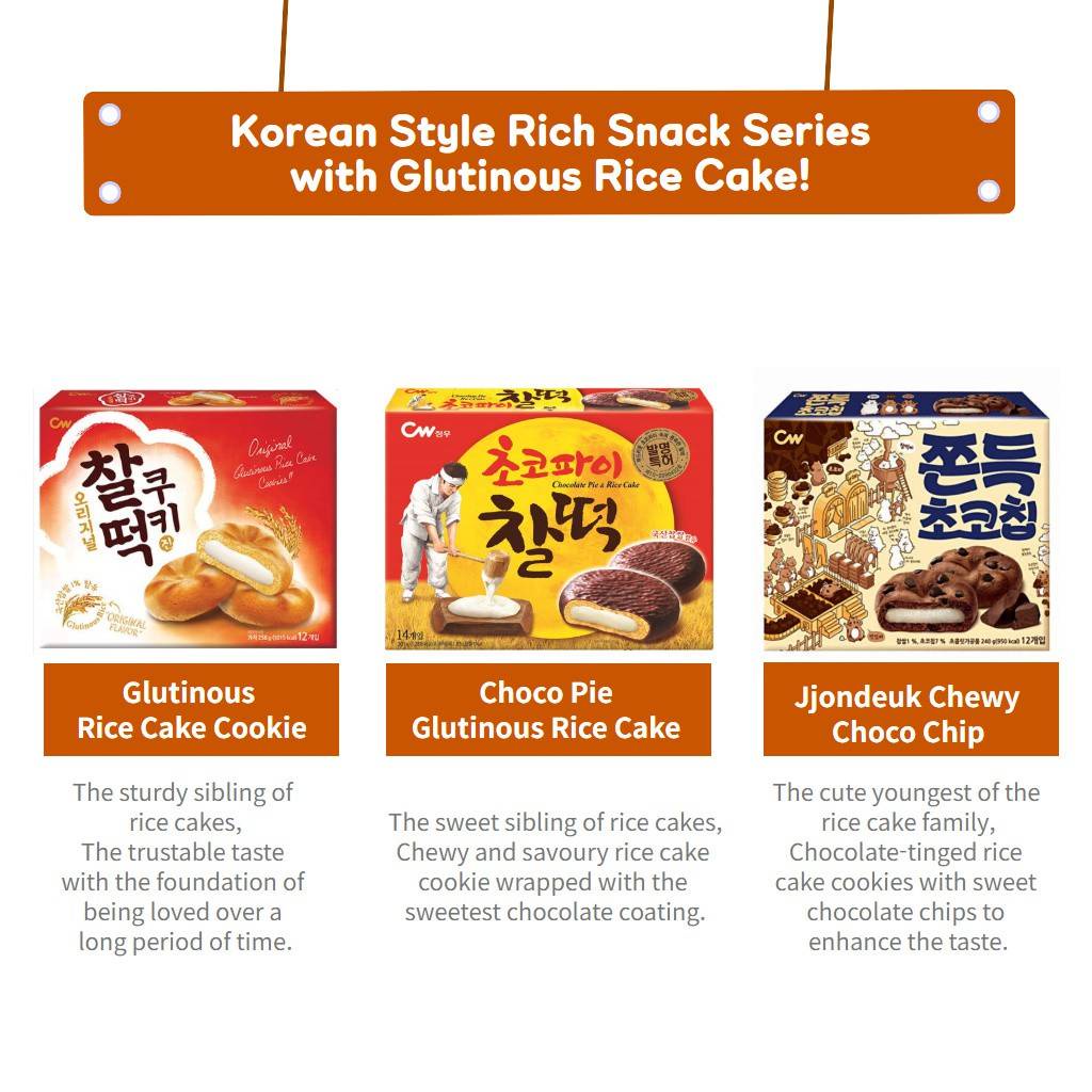 cw chewy chocopie rice cookie ขนมเกาหลี คุกกี้เกาหลีช็อคโก้พายสอดไส้ต็อกเคลือบช็อค 258g 청우 초코파이 찰떡쿠키