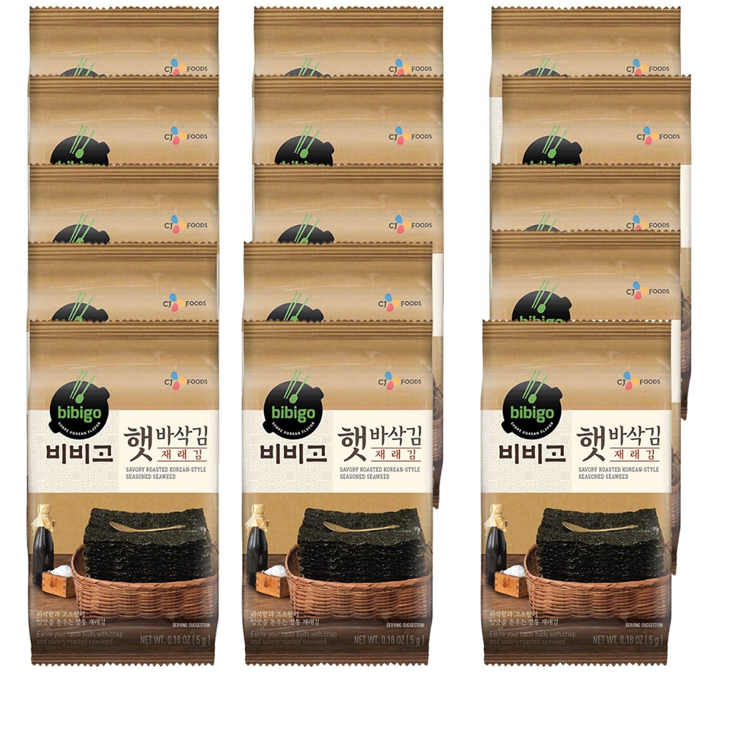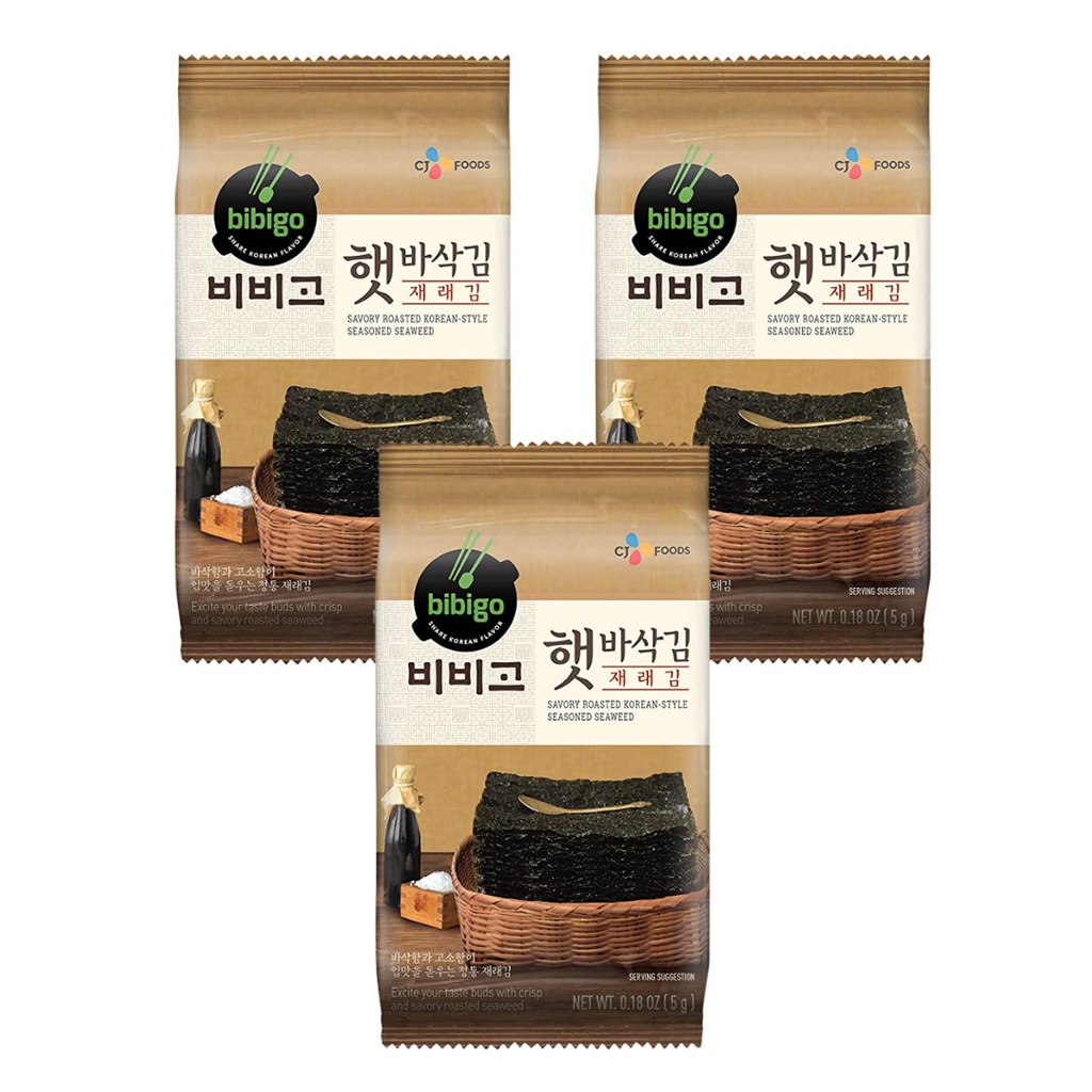 สาหร่ายเกาหลี ปรุงรสพร้อมทาน cj bibigo savory roasted korean seasoned seaweed 4g 비비고 햇바삭김