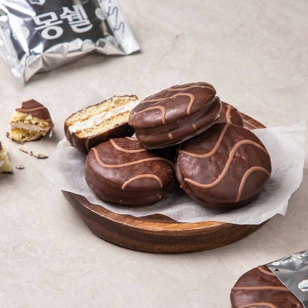 Lotte Mon Cher Cacao Pie ขนมเกาหลี ขนมเค้กครีมเคลือบช็อกโกแลต 192g รสช็อคโก แลต 몽쉘카카오 케이크