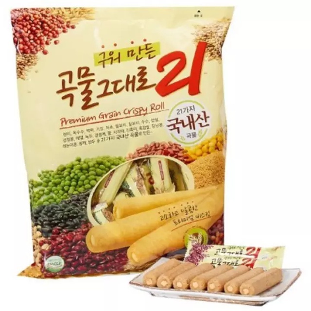 grain crispy roll ขนมเกาหลี 곡물그대로 ทำจากธัญพืช 21ชนิด สอดไส้ครีมชีสบรรจุ คริสปี้โรลเกาหลี 150g//180g