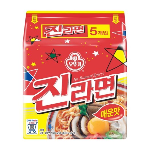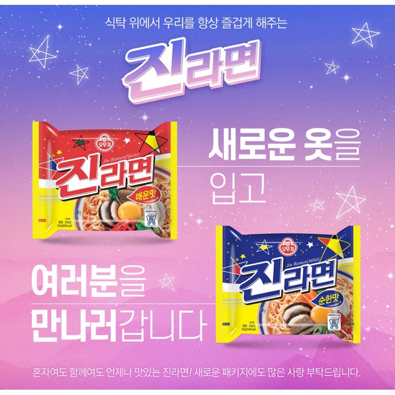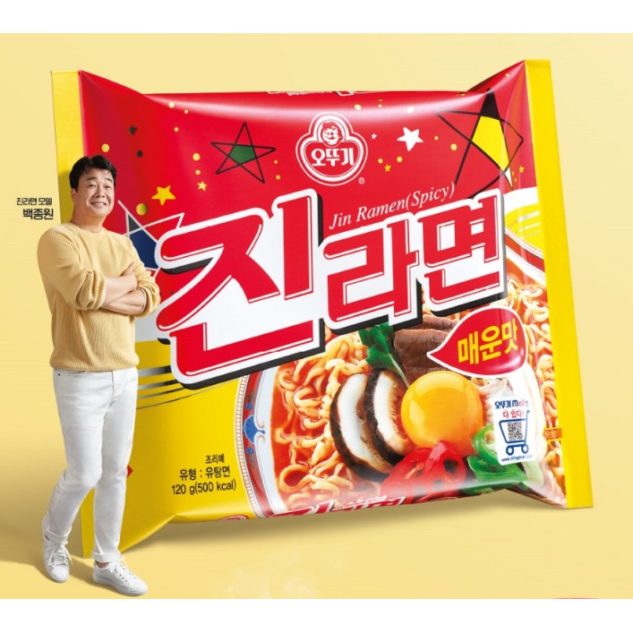 ottogi jin ramen (진라면) spicy & soft 120 g. โอโตกิ จิน ราเมง สไปซี่ 120 กรัม บะหมี่เกาหลี มาม่าแบมแบม