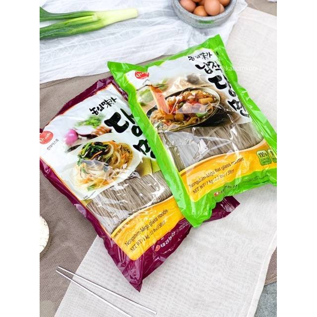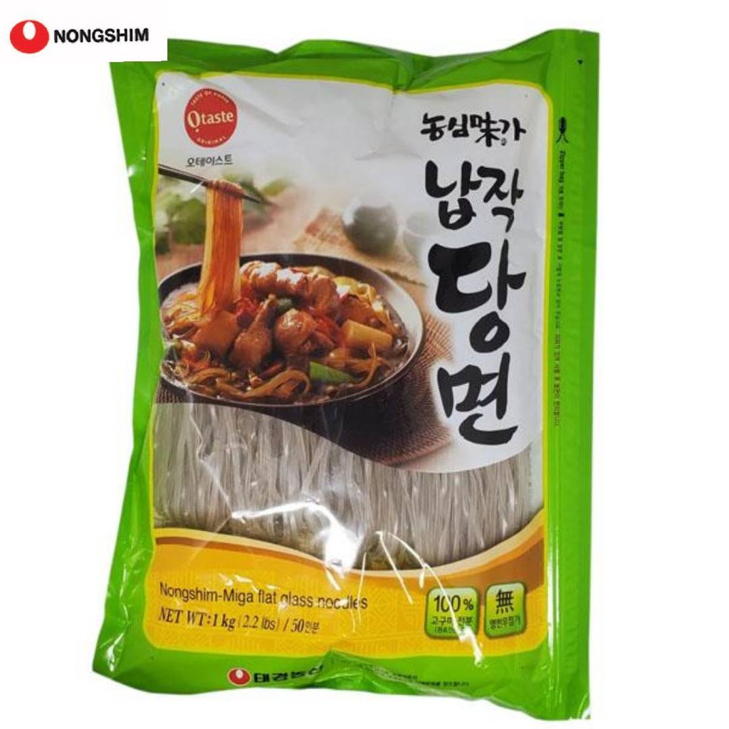 flat glass noddle 1kg วุ้นเส้นเกาหลีเส้นแบน jabchae nongshim miga flat glass noddle 1kg 태경 농심미