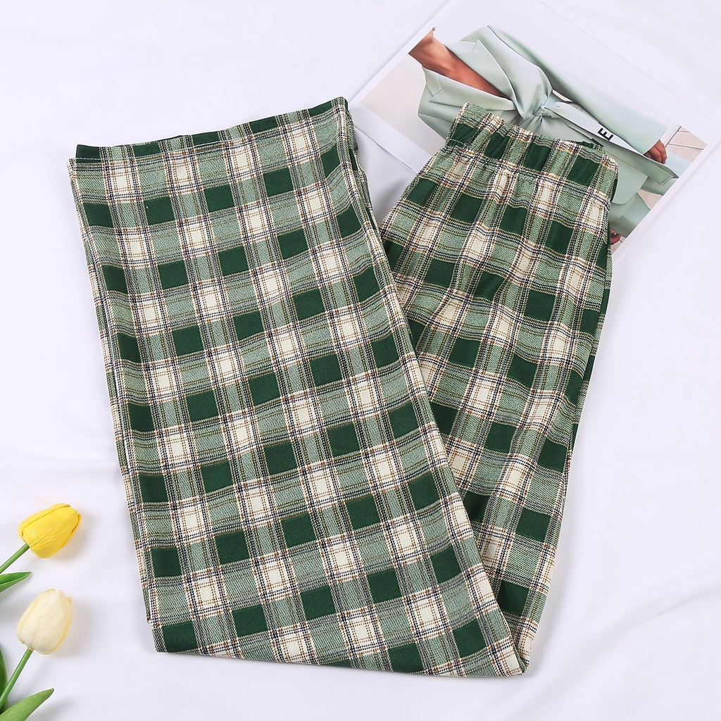กางเกงขายาวลายสก๊อต กางเกงขายาวผู้หญิง ขายาวเอวสูง ใส่สบาย PL
