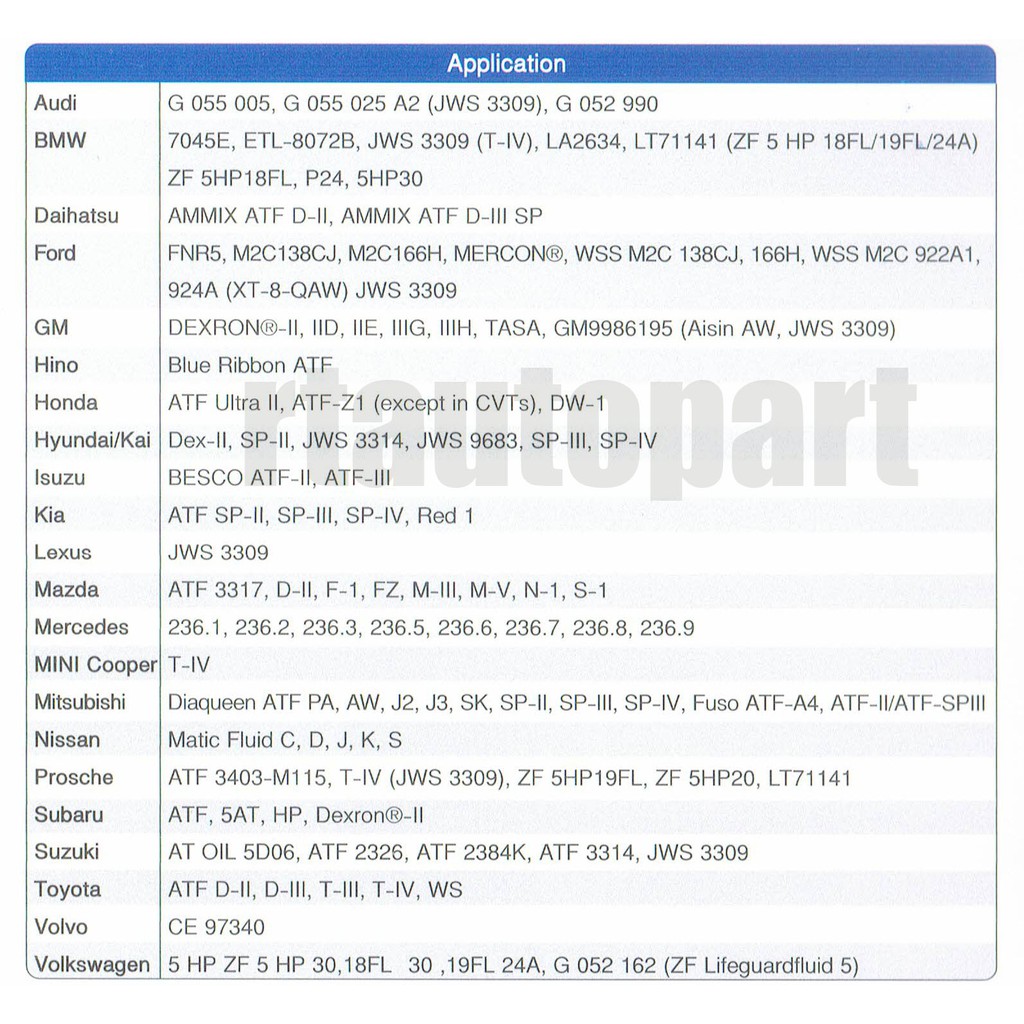 Aisin น้ำมันเกียร์อัตโนมัติสังเคราะห์100% ไอชิน Aisin AFW+ ขนาด 4ลิตร / น้ำมันเกียร์ออโต้ / น้ำมันเกียร์