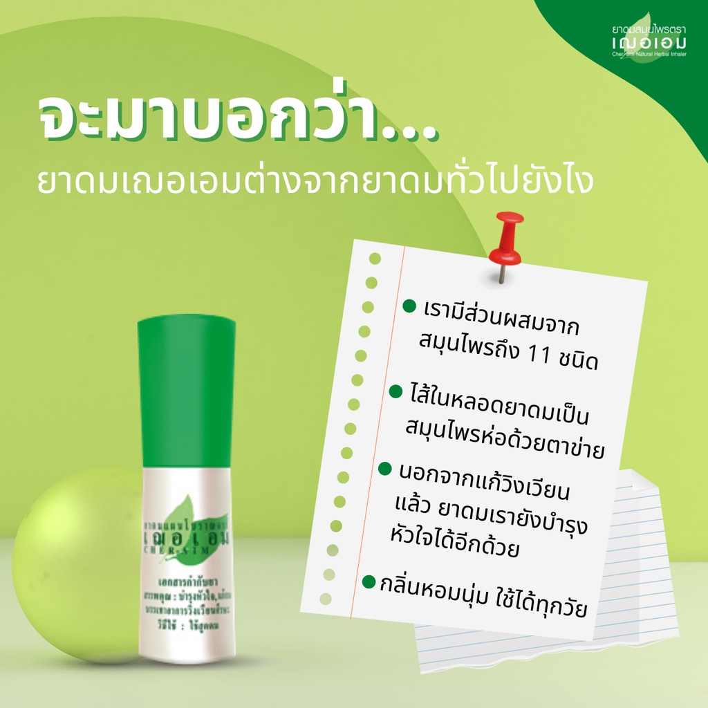 เฌอเอม ยาดมสมุนไพรหลอด ขนาด 1 กรัม (ยกโหล 12 ชิ้น)