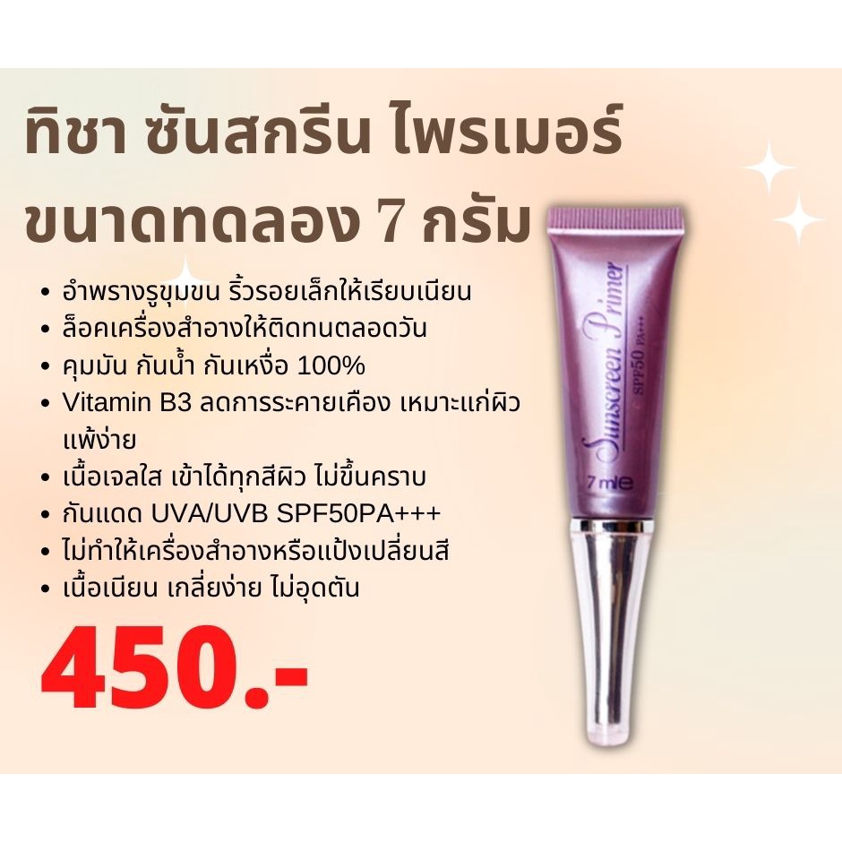 ทิชา ซันสกรีน ไพรเมอร์ ขนาดเล็ก 7 กรัม TICHA Sunscreen Primer SPF50PA+++ 7g.
