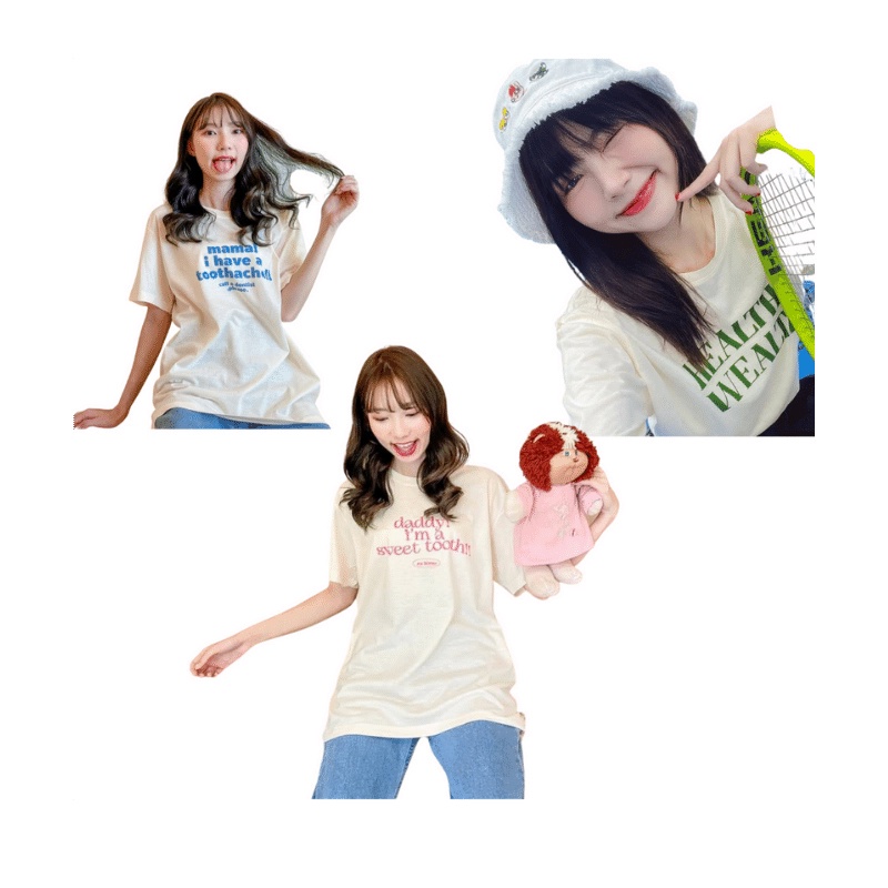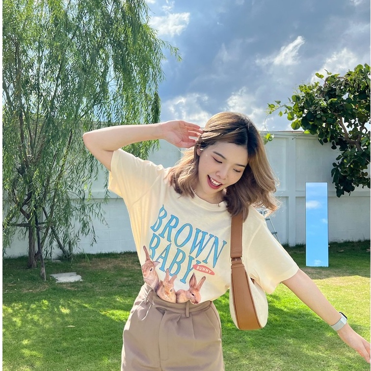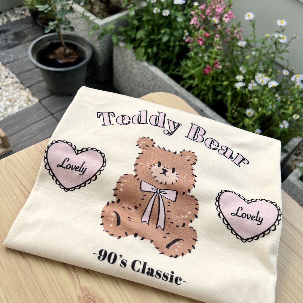 (ลด 50% ในvideo และ Live) พร้อมส่ง 🧸 เสื้อยืดโอเวอร์ไซส์ classic ผ้า TC สีครีม คอกลม น่ารัก 🧸